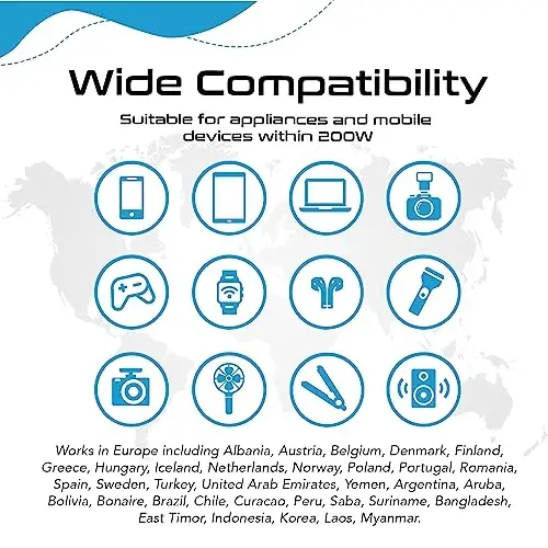 Ceptics European Travel Voltage Converter, 200W güce kadar olan saç maşası ve düzleştiricileriniz için ideal bir çözümdür. 220V kullanan Avrupa, Asya, Avustralya ve Afrika ülkelerinde cihazlarınızı güvenle kullanmanızı sağlar. Bu seyahat adaptörü, 220V elektriği 110V'a dönüştürerek cihazlarınızın zarar görmesini engeller. Sadece saç şekillendirme araçları için değil, aynı zamanda CPAP cihazları, elektrikli diş fırçaları, fanlar, nebulizatörler ve oyun konsolları gibi birçok cihazı şarj etmek için de mükemmeldir. 6 cihazı aynı anda şarj edebilme özelliği sayesinde seyahatlerinizde size büyük kolaylık sağlar. 2 adet Amerikan prizi ve 4 adet USB portu (PD 18W hızlı şarj özellikli) ile donatılmıştır. Ceptics teknolojisi, 6.4A'e kadar çıkış sağlayabilir ve bağlı cihazların maksimum şarj akımını otomatik olarak eşleştirir. Güvenliğiniz için aşırı ısınmayı önleyen sessiz bir fan, otomatik kapanma özelliği, aşırı akım, aşırı sıcaklık ve kısa devre koruması gibi özelliklerle donatılmıştır. SWadApt teknolojisi sayesinde Type C, G ve E/F priz tiplerini destekler ve Avrupa'nın birçok ülkesinde sorunsuz kullanım imkanı sunar. Ayrıca, Arjantin, Aruba, Bolivya, Brezilya, Şili, ve daha birçok ülkede de çalışır. Kompakt ve hafif tasarımı sayesinde (4.8x3.1x1.5 boyutlarında ve 1.5 metre kablo uzunluğunda) seyahatlerinizde yanınızda kolayca taşıyabilirsiniz. Seyahatlerinizde güvenliği ve konforu bir arada sunan bu dönüştürücü, 12 ay Ceptics ABD garantisi ile desteklenmektedir. Ürününüzü Asurion güvencesiyle koruma altına alabilirsiniz. Arızalar, düşmeler, sıvı dökülmeleri ve daha fazlasına karşı kapsamlı bir koruma sunar. Satın alma tarihinden itibaren başlayan plan, üretici garantisi sona erdikten sonra devreye girer ve elektrik dalgalanmalarına karşı ilk günden itibaren koruma sağlar. 7/24 ulaşabileceğiniz uzmanlar, kurulum, bağlantı sorunları ve daha birçok konuda size yardımcı olacaktır. Kolay talep süreci sayesinde online veya telefonla hızlıca talep oluşturabilir ve çoğu talep dakikalar içinde onaylanır. Ürününüz tamir edilir, değiştirilir veya satın alma fiyatı kadar bir hediye kartı ile tazmin edilir. Ürününüzü ticari amaçlarla kullanmıyorsanız, bu koruma planı sizin için idealdir. Toplamda 5.000$'a kadar taleplerinizi kapsar ve istediğiniz zaman iptal edebilirsiniz. Ceptics European Travel Voltage Converter ile seyahatlerinizde güç sorununu ortadan kaldırın ve cihazlarınızı güvenle kullanmanın keyfini çıkarın. Ek adaptör başlıkları ayrı olarak satılmaktadır.