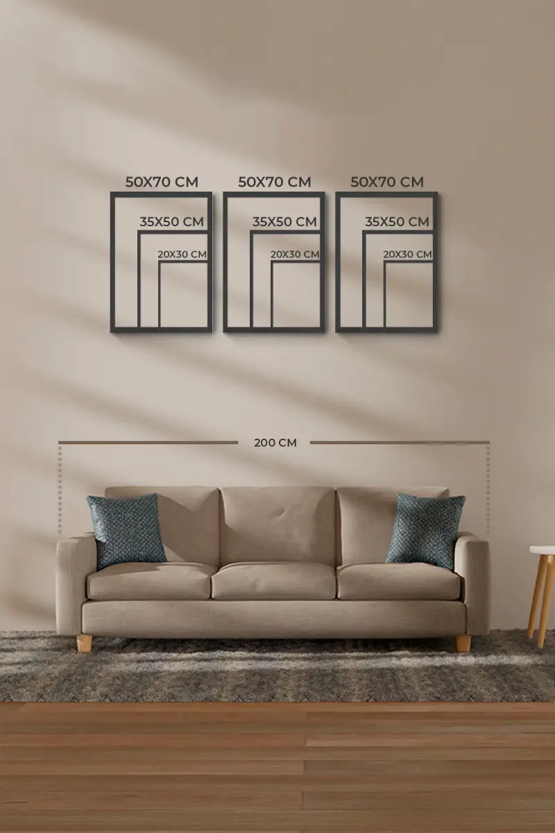 Bu tablo seti, farklı boyutlarda ve desenlerdeki üç tablodan oluşmaktadır. Tabloların her biri, yüksek çözünürlüklü baskı teknikleri kullanılarak üretilmiştir. Montajı kolaydır ve duvara asmak için gerekli tüm aparatlar kutu içerisinde bulunmaktadır. Temizliği nemli bir bez ile yapılabilir. Direkt güneş ışığından uzak tutulması önerilir. Ürün, özenle paketlenerek gönderilmektedir.