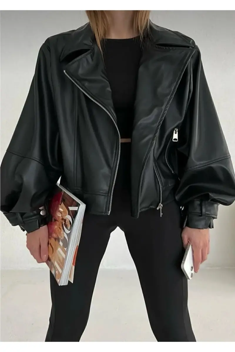Черная кожаная куртка с деталями в виде рукавов-буфов, придающая современный вид, станет незаменимым элементом вашего гардероба. Изготовленная из высококачественной кожи, эта куртка предлагает стильный и прочный вариант. Идеально подходящая для элегантного и изысканного образа, эта куртка - вещь, которую можно легко использовать в разных сочетаниях.