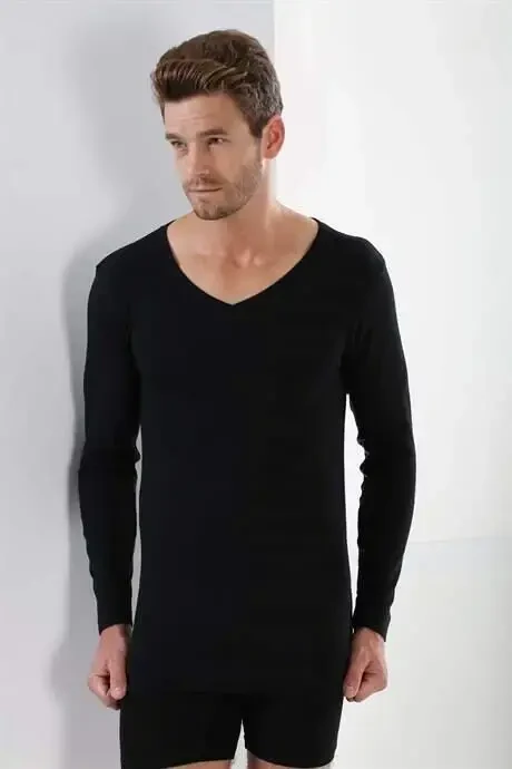 Черный Мужской Боди: Длинный Рукав, V Вырез, Хлопковый и Удобный