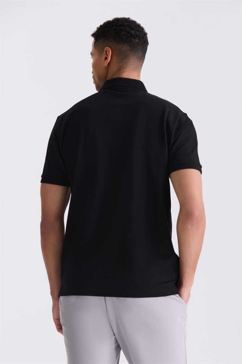 Чёрная приталенная мерсеризованная футболка-поло | Мужская одежда