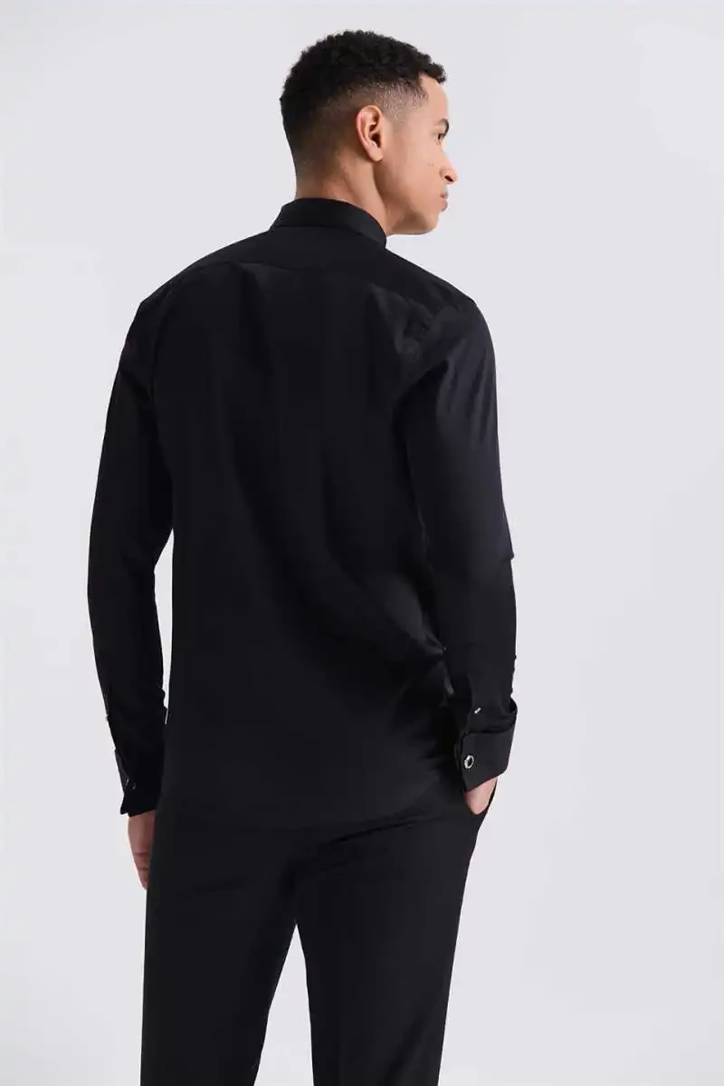 Черная облегающая сорочка, Сорочка из 100% хлопка, Сорочка с воротником на пуговицах, Сорочка с манжетами на пуговицах
