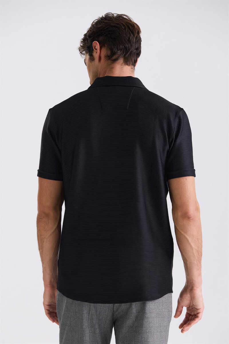 черная облегающая футболка, футболка с воротником рубашки, футболка с деталями на пуговицах, мужская футболка, хлопковая футболка, облегающая мужская футболка, стильная мужская футболка, современная мужская футболка, удобная мужская футболка, черная мужская футболка