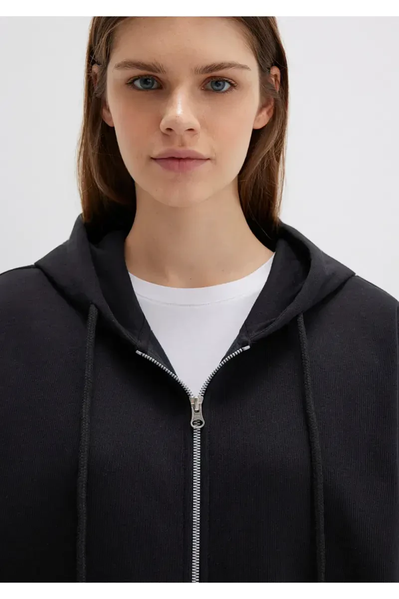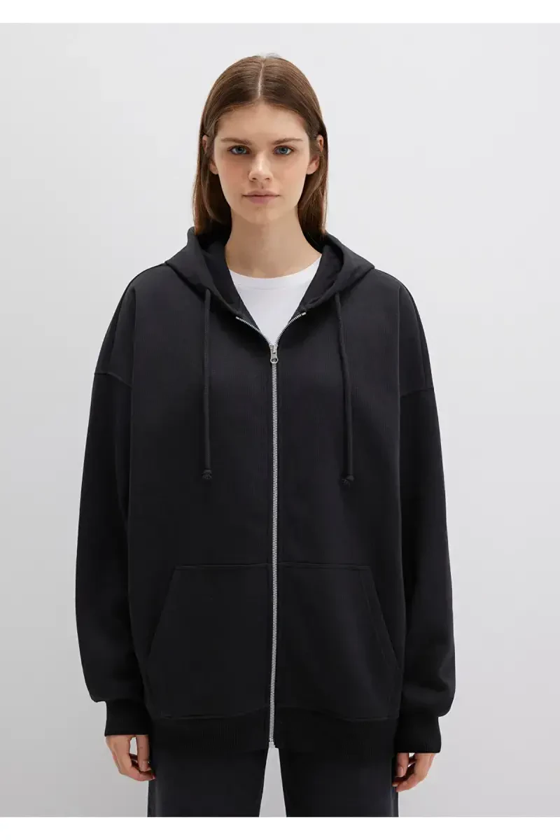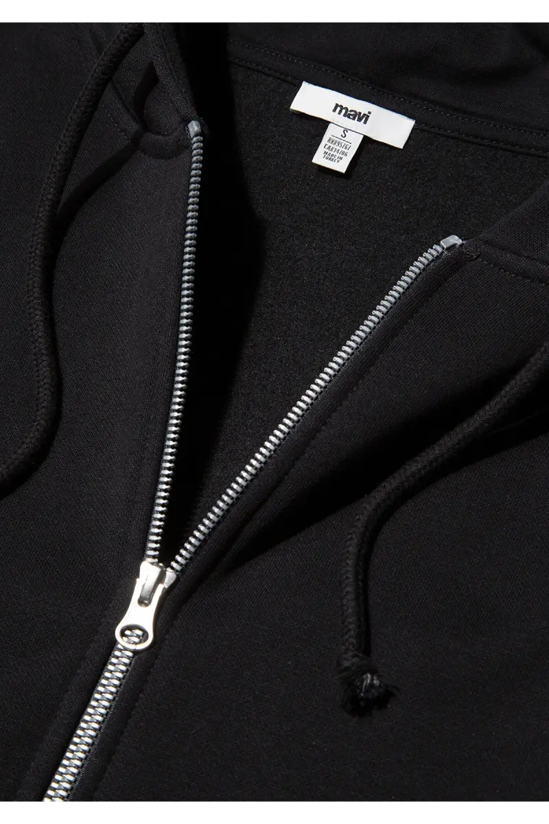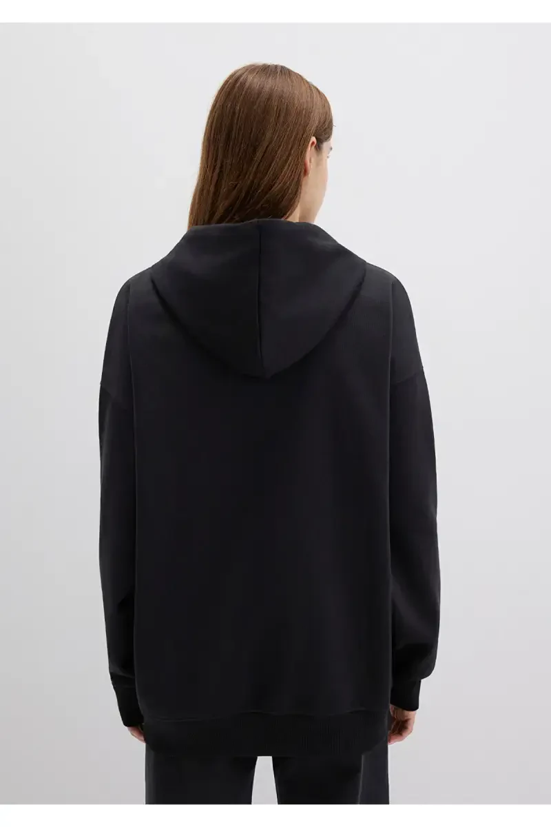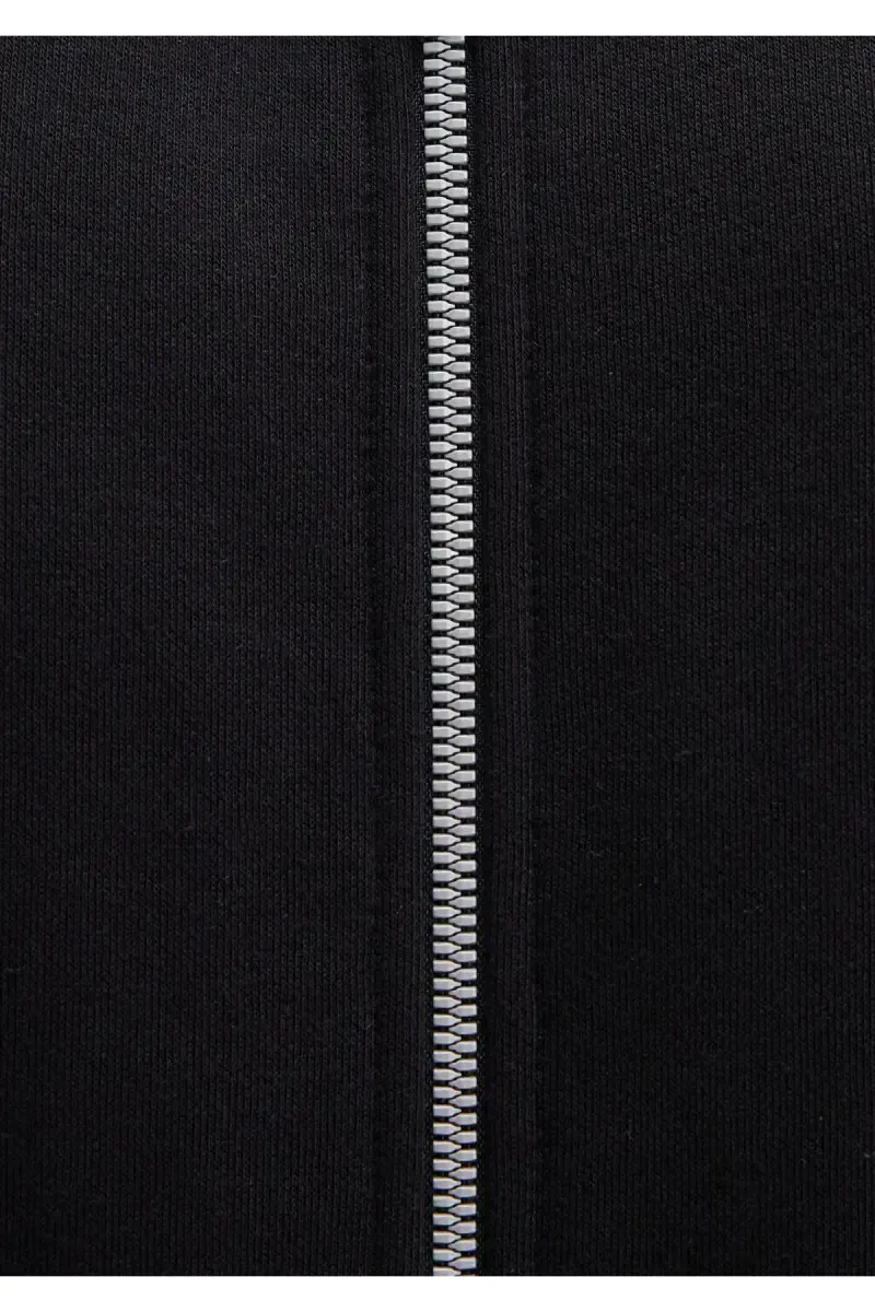 Толстовка, которая своим черным цветом подойдет к любому вашему наряду, благодаря капюшону на молнии придает как стильный, так и практичный вид. Толстовка, которая также повышает свою практичность за счет передних карманов, - идеальный выбор для дополнения вашего повседневного стиля.