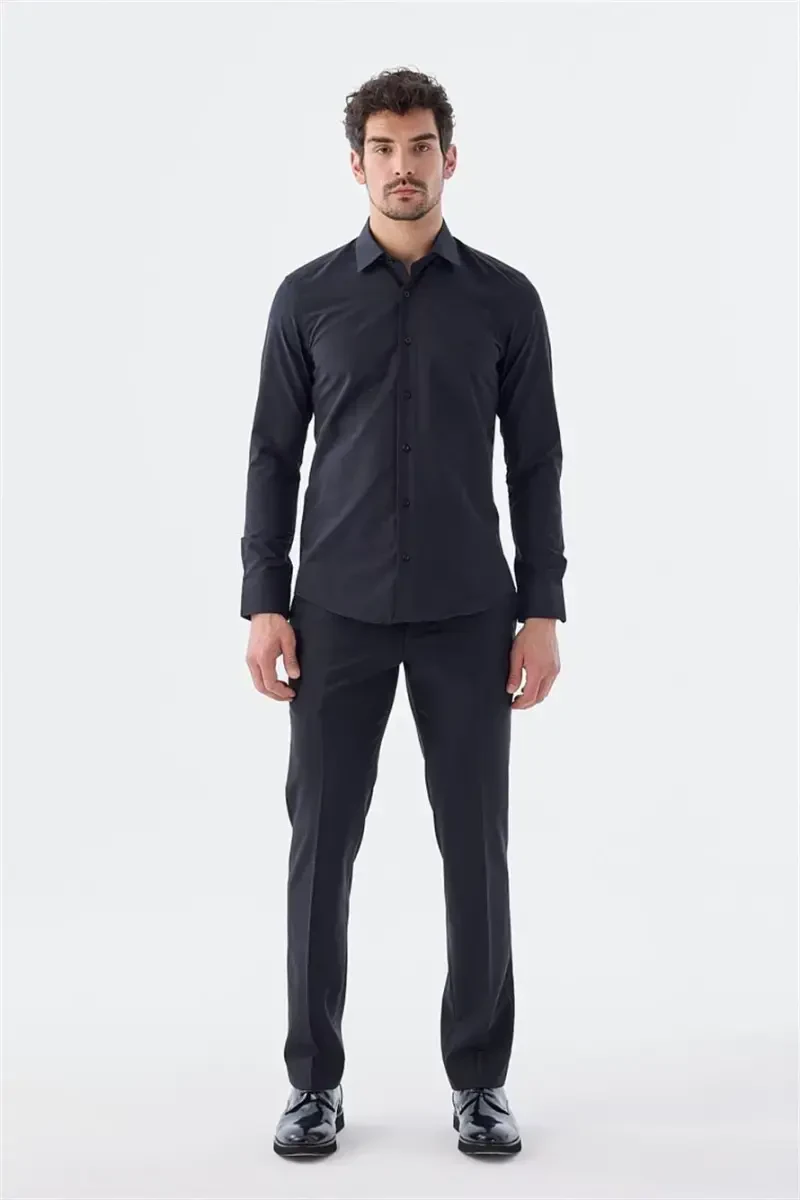 Дополните свой образ элегантностью и изысканностью с черной облегающей рубашкой с длинным рукавом, итальянским воротником и классическим галстуком из хлопка. Изготовленная из смесовой ткани, состоящей из 65% хлопка и 35% полиэстера, эта рубашка отличается мягкостью и воздухопроницаемостью.