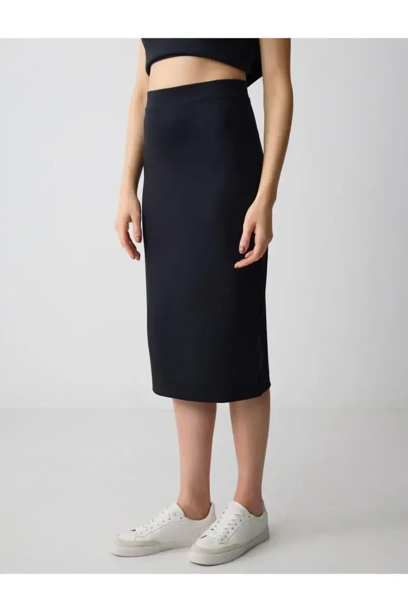 Добавьте нотку изысканности в свой стиль с черной трикотажной юбкой миди с завышенной талией и облегающим кроем, которая подчеркнет вашу элегантность и комфорт. Эта юбка, с ее вечным черным цветом и облегающим кроем, идеально подходит для любой фигуры, а высокая талия визуально удлиняет ноги, делая ваш силуэт безупречным. Эта универсальная вещь, которую можно носить как в повседневной жизни, так и на особые мероприятия, станет незаменимой частью вашего гардероба. Благодаря трикотажной ткани она дышит и обеспечивает свободу движений. Черная трикотажная юбка миди с завышенной талией и облегающим кроем, изготовленная из высококачественного материала для длительного использования, — идеальный выбор для современной женщины, которая ищет сочетание стиля и комфорта. Вы можете персонализировать свой стиль, комбинируя ее с различными блузками, рубашками и аксессуарами, создавая каждый раз новый образ. Вы можете создать повседневный шикарный стиль, сочетая эту юбку с кроссовками, или блистать на особых мероприятиях с туфлями на каблуке и элегантной блузкой. Благодаря эластичной структуре изделия вы можете свободно двигаться в течение всего дня, наслаждаясь комфортом, не жертвуя элегантностью. Благодаря текстуре и крою ткани она идеально облегает ваши формы, придавая вам изящный вид. Черный цвет позволяет легко сочетать ее с верхом и обувью любого цвета, что делает ее одной из самых практичных вещей в вашем гардеробе. Если вы ищете юбку, которая одновременно стильная и удобная, то черная трикотажная юбка миди с завышенной талией и облегающим кроем — это то, что вам нужно!