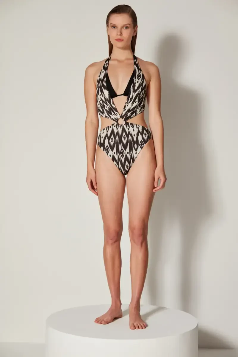 Черно-белый купальник-монокини Olivia с завязками на шее - коллекция Free Masur