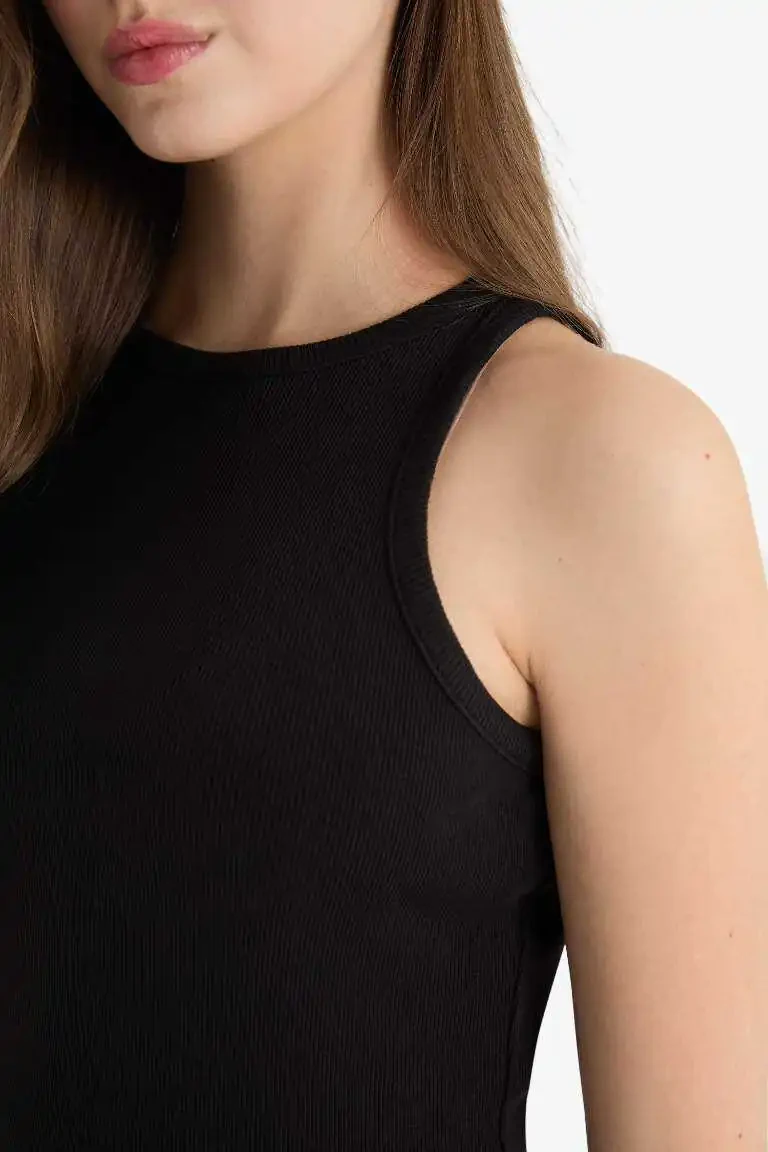 Черное платье-макси без рукавов с корсетом и лифом-халтер в рубчик - идеальный выбор для женщин, которые ищут стиль и комфорт одновременно. Элегантный лиф-халтер и облегающий крой делают платье привлекающим внимание. Изготовленное из рубчатой корсетной ткани, оно сочетает в себе комфорт и стиль. Длина макси визуально удлиняет ноги, а платье предлагает элегантный образ как для повседневной носки, так и для особых случаев.