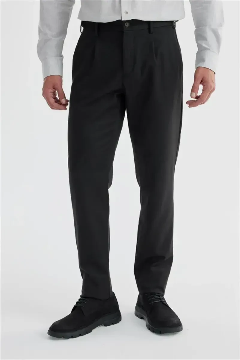 Сочетайте стиль и комфорт в своем гардеробе с черными брюками Comfort Fit с двойными складками, пряжкой на поясе и хлопковым канвасом. Эти брюки разработаны с учетом потребностей современного мужчины и обеспечивают комфорт и свободу движений в течение всего дня. Благодаря высококачественному материалу и тщательному изготовлению они обещают долговечность. Крой Comfort Fit плотно прилегает к телу, не сдавливая его, обеспечивая комфорт в течение всего дня. Двойная складка придает брюкам классический и изысканный вид, а дизайн с пряжкой на поясе завершает образ. Прочность ткани канвас делает брюки идеальными как для повседневной носки, так и для особых случаев. Черный цвет легко сочетается с любым нарядом, помогая легко дополнить свой стиль. Эти брюки, которые можно легко сочетать с рубашкой, футболкой или поло, станут незаменимой частью вашего гардероба. Выразите свой стиль и элегантность в любой обстановке, будь то деловая встреча или поездка на выходные. Благодаря волокнам TENCEL в составе ткани воздухопроницаемость увеличена, а хлопковая текстура обеспечивает мягкость. Содержание эластана обеспечивает комфорт, не ограничивая свободу движений. Наслаждайтесь стилем и комфортом в черных брюках Comfort Fit с двойными складками, пряжкой на поясе и хлопковым канвасом. Эти брюки — не просто предмет одежды, а образ жизни. Это идеальный выбор, чтобы выразить свой стиль и чувствовать себя хорошо. Эти брюки, в каждой детали которых чувствуется качество и забота, станут одним из самых любимых предметов вашего гардероба. Помните, что элегантность кроется в деталях, и эти брюки полны тонких деталей, которые добавят элегантности вашему стилю. Они созданы для того, чтобы вы чувствовали себя уверенно и стильно на каждом шагу.