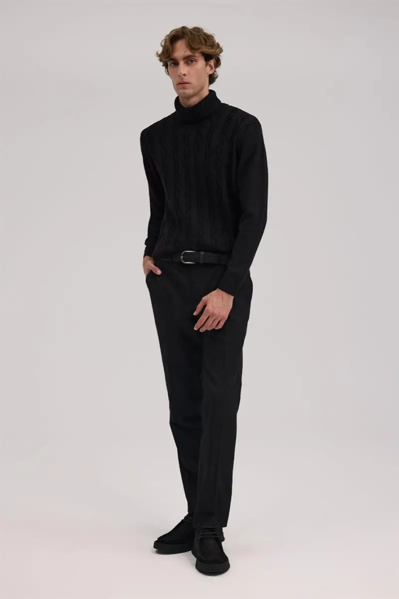 Ощутите элегантность и комфорт одновременно с черными тканевыми брюками Regular Fit. Эти брюки, которые будут сопровождать вас в любой обстановке, от повседневного использования до особых случаев, станут незаменимой частью вашего гардероба. Благодаря современному крою и качественной ткани они не только позволяют вам выглядеть стильно, но и помогают чувствовать себя комфортно в течение всего дня. Крой Regular Fit подходит для любого типа фигуры, облегая тело, но не ограничивая свободу движений. Смесь полиэстера, вискозы и эластана в составе ткани повышает износостойкость брюк, а также обеспечивает мягкое прикосновение. Прочность полиэстера, натуральная и дышащая структура вискозы, а также эластичность эластана обеспечивают долговечность и удобство в использовании брюк. Благодаря этой смеси тканей брюки легко гладятся и практически не мнутся.Черный цвет - идеальная основа для любого наряда. Вы можете легко сочетать их с рубашками, футболками, свитерами или куртками и создавать разные стили. Вы можете дополнить их белой рубашкой и пиджаком для классического образа или красочной футболкой и кроссовками для более спортивного стиля. Они также легко сочетаются с вашими аксессуарами, позволяя вам подчеркнуть свой стиль. Детали швов и качественная отделка на брюках добавляют элегантности, а карманы обеспечивают практичное использование. Они позволяют легко носить с собой повседневные вещи. Будь то деловая встреча, кафе с друзьями или особый случай, эти брюки всегда помогут вам выглядеть стильно и ухоженно.Размер 42 на манекене может дать вам представление об общем виде и посадке брюк. Однако важно выбрать правильный размер, принимая во внимание свои собственные мерки. Крой Regular Fit обеспечивает удобство, а также красиво подчеркивает ваши формы. Благодаря эластичной ткани вы можете чувствовать себя комфортно в течение всего дня, не ограничивая свободу движений. Эти брюки не только выглядят стильно, но и ставят во главу угла ваш комфорт. Если вы ищете долговечные, прочные и стильные брюки, то черные тканевые брюки Regular Fit - это то, что вам нужно! Они станут одним из основных элементов вашего гардероба и изделием, которое вы всегда будете любить носить.