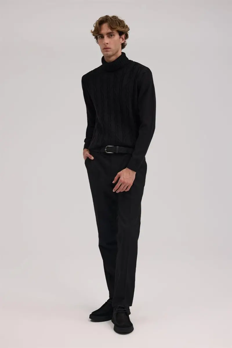 Черные классические тканевые брюки – это сочетание элегантности и комфорта, которое станет незаменимой вещью в вашем гардеробе. Эти брюки, которые можно носить как в деловой жизни, так и в особых случаях, привлекают внимание своим современным кроем и качественной тканью. Благодаря классическому крою они сидят по фигуре, но не стесняют движений. Благородство черного цвета и текстура ткани придадут изысканность любому вашему образу.Эти брюки изготовлены из смеси 56% полиэстера, 42% вискозы и 2% эластана. Эта специальная смесь делает брюки одновременно прочными и удобными. Полиэстер обеспечивает долговечность брюк и предотвращает их легкую сминаемость, а вискоза придает ткани мягкость и приятное ощущение. Эластан придает брюкам эластичность и обеспечивает комфорт при ношении в течение всего дня. Благодаря этому брюки не только позволяют вам выглядеть стильно в течение всего дня, но и поддерживают вашу свободу движений.Черный цвет делает брюки универсальной вещью. Их можно легко сочетать с рубашками, футболками, блузками и пиджаками. Вы можете сочетать их с белой рубашкой и пиджаком для классического образа или с футболкой и кроссовками для более непринужденного стиля. Вы также можете создавать разные стили с помощью выбора аксессуаров. Вы можете создать официальный образ с элегантным ремнем и классическими туфлями или более повседневный стиль с красочным шарфом и лоферами.Классический крой брюк подходит для любого типа фигуры и создает элегантный силуэт. Линия талии имеет идеальную высоту для вашего комфорта в течение всего дня. Длина штанины обеспечивает гармоничный вид с вашей обувью. Швы и пуговицы, используемые в деталях брюк, отражают качество и тщательность изделия.Эти брюки не только выглядят стильно, но и просты в использовании. Благодаря особенностям ткани их легко гладить и они долго сохраняют свою форму. При соблюдении инструкций по стирке цвет не выцветает и долго сохраняет свой первоначальный вид. Это вневременная вещь, которая надолго останется в вашем гардеробе.Черные классические тканевые брюки – это выбор стильных мужчин и женщин. Эти брюки, которые дополнят вашу элегантность как в повседневной жизни, так и на специальных мероприятиях, сочетают в себе комфорт и элегантность. Это один из основных предметов вашего гардероба, который вы всегда захотите иметь под рукой. Рост манекена 189 см, талия 81 см, бедра 97 см, размер 42. Эта информация поможет вам правильно подобрать размер. Вы можете принять эти размеры во внимание при определении своего размера.