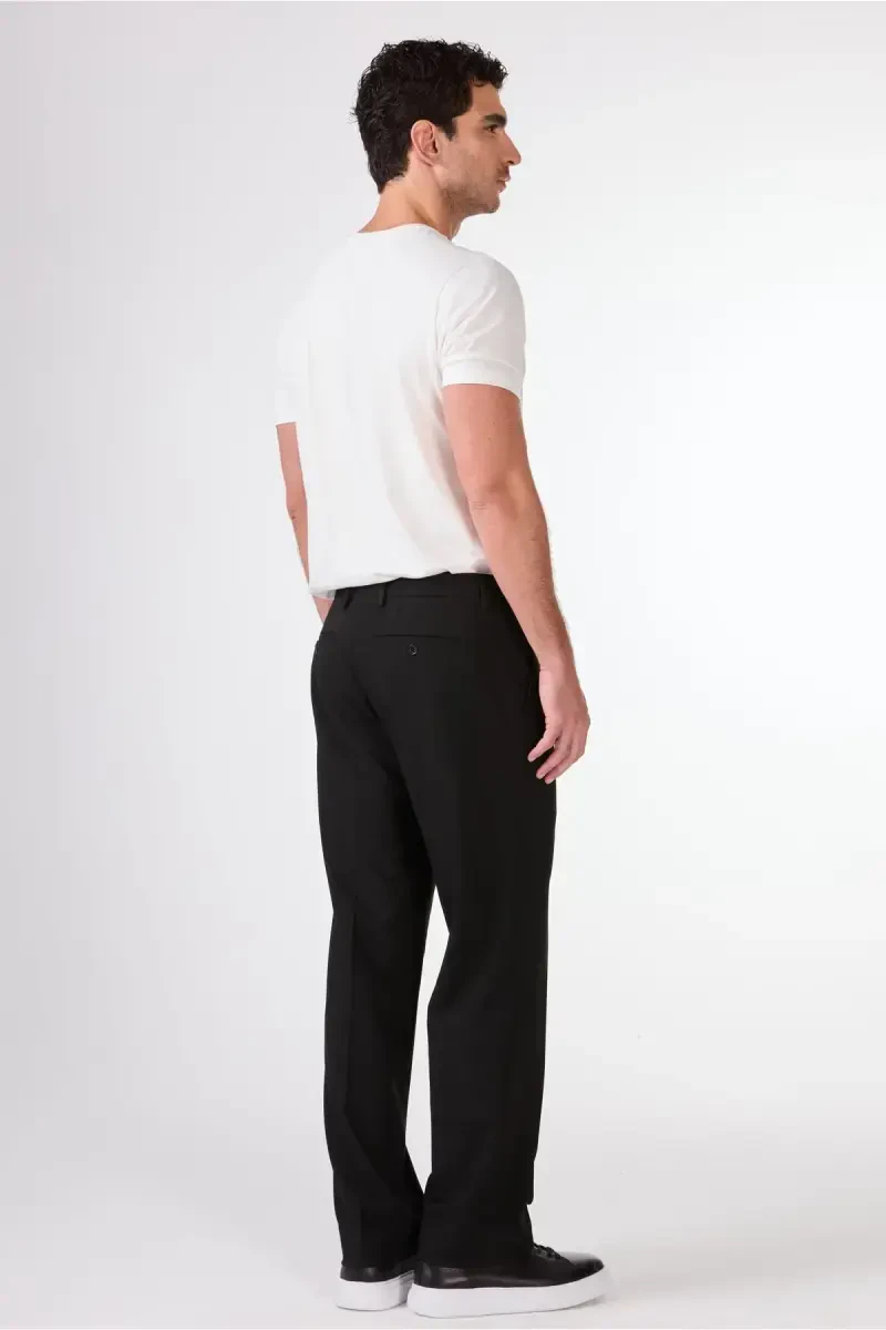 Черные мужские классические брюки прямого кроя regular fit — удобный и стильный выбор для повседневного использования, дополняющий ваш повседневный стиль Тканая структура ткани обеспечивает как прочность, так и комфорт Крой regular fit соответствует линиям вашего тела и обеспечивает удобную носку Обращаясь к дизайну всех возрастных групп, он имеет широкий круг пользователей Его большая длина облегает ноги и придает стильный вид Боковые карманы обеспечивают дополнительное пространство для практичного использования, обеспечивая легкий доступ к вашим повседневным вещам С нормальной высотой талии он обеспечивает удобную посадку и позволяет легко двигаться в течение дня Его простой дизайн позволяет легко комбинировать с различными предметами одежды и сочетается с разными топами. Благодаря своему простому рисунку он предлагает вневременной стиль и может быть предпочтительным в любое время года
