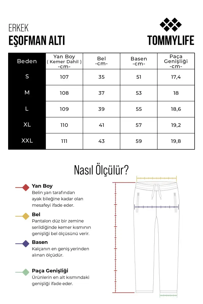 Черные спортивные брюки мужские узкого кроя с тремя карманами на молнии и классическими штанинами - 84671-ЧЕРНЫЙ, от TOMMYLIFE добавляют современный штрих в гардероб стильных мужчин. Эти спортивные штаны, которые вы можете с комфортом носить как для повседневной носки, так и для занятий спортом, сочетают в себе элегантность и комфорт. Узкий крой создает современный силуэт, облегая тело, а классический дизайн штанин придает вневременной вид. Три кармана на молнии позволяют безопасно носить с собой вещи, а также повышают функциональность спортивных штанов. Создайте повседневный стиль, сочетая их со спортивной обувью, или получите удобный и стильный вид, дополнив их футболками в повседневной одежде. Благородство черного цвета легко сочетается с любым образом, а детали спортивных штанов подчеркивают ваш стиль. Эти спортивные штаны, произведенные с качеством TOMMYLIFE, изготовлены из прочных материалов для длительного использования. Смесь хлопка, полиэстера и эластана в ткани обеспечивает как удобство ношения, так и свободу движений. Пожалуйста, примите во внимание, что цвета изделия могут незначительно отличаться из-за освещения, используемого при фотосъемке. TOMMYLIFE, как бренд, сочетающий в себе качество и элегантность в мужской одежде, стремится оправдать ваши ожидания и этими спортивными штанами. Этот продукт, который станет незаменимым в гардеробе современного мужчины, является идеальным выбором для отражения вашего стиля.
