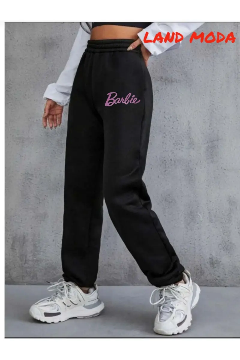 черные спортивные штаны с эластичной талией и принтом женщины - черный11