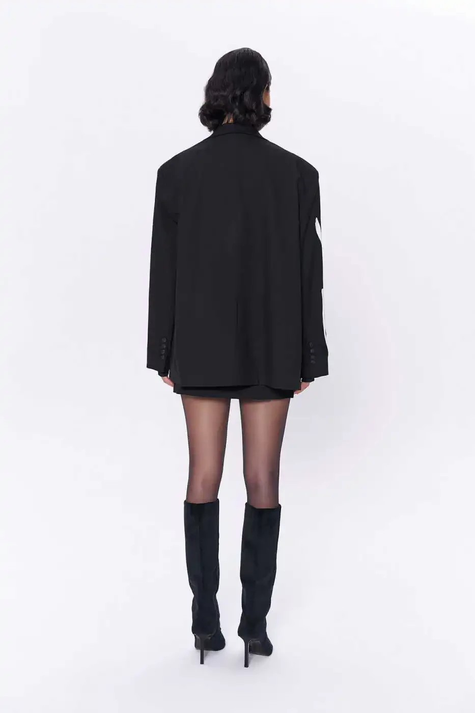 Сочетайте стиль и комфорт с черным блейзером с подкладкой с узором в виде шали и создайте потрясающий образ в любой обстановке. Этот блейзер, выделяющийся элегантными линиями и современным кроем, станет идеальным выбором для любых ваших сочетаний, от повседневной жизни до особых случаев.
