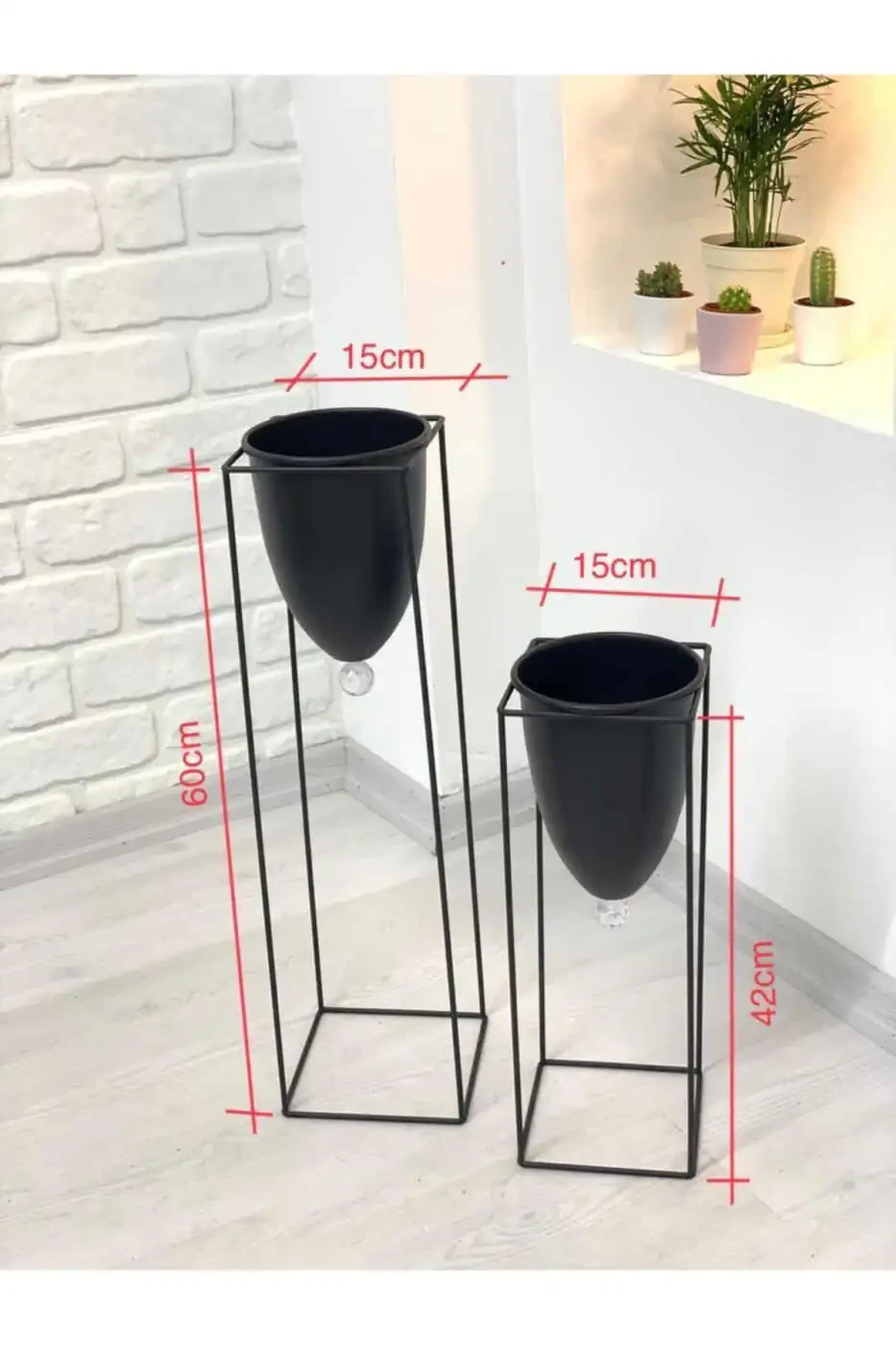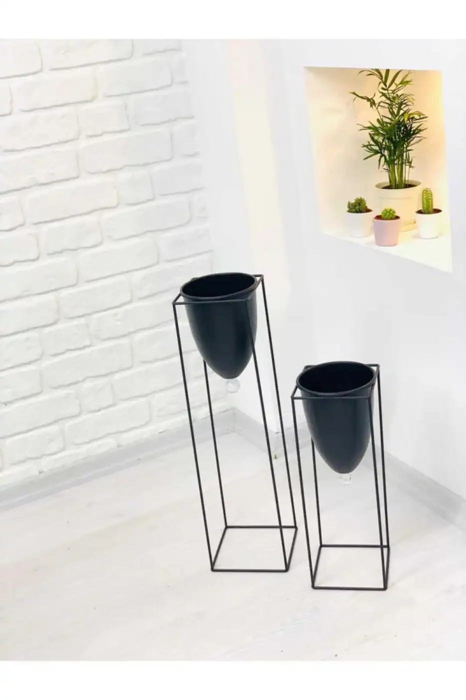 Вы можете создать естественную атмосферу в своем доме, добавив в горшки различные растения. Цветы, зелень или кактусы будут выглядеть еще красивее с черной металлической подставкой для цветов с 2 горшками.