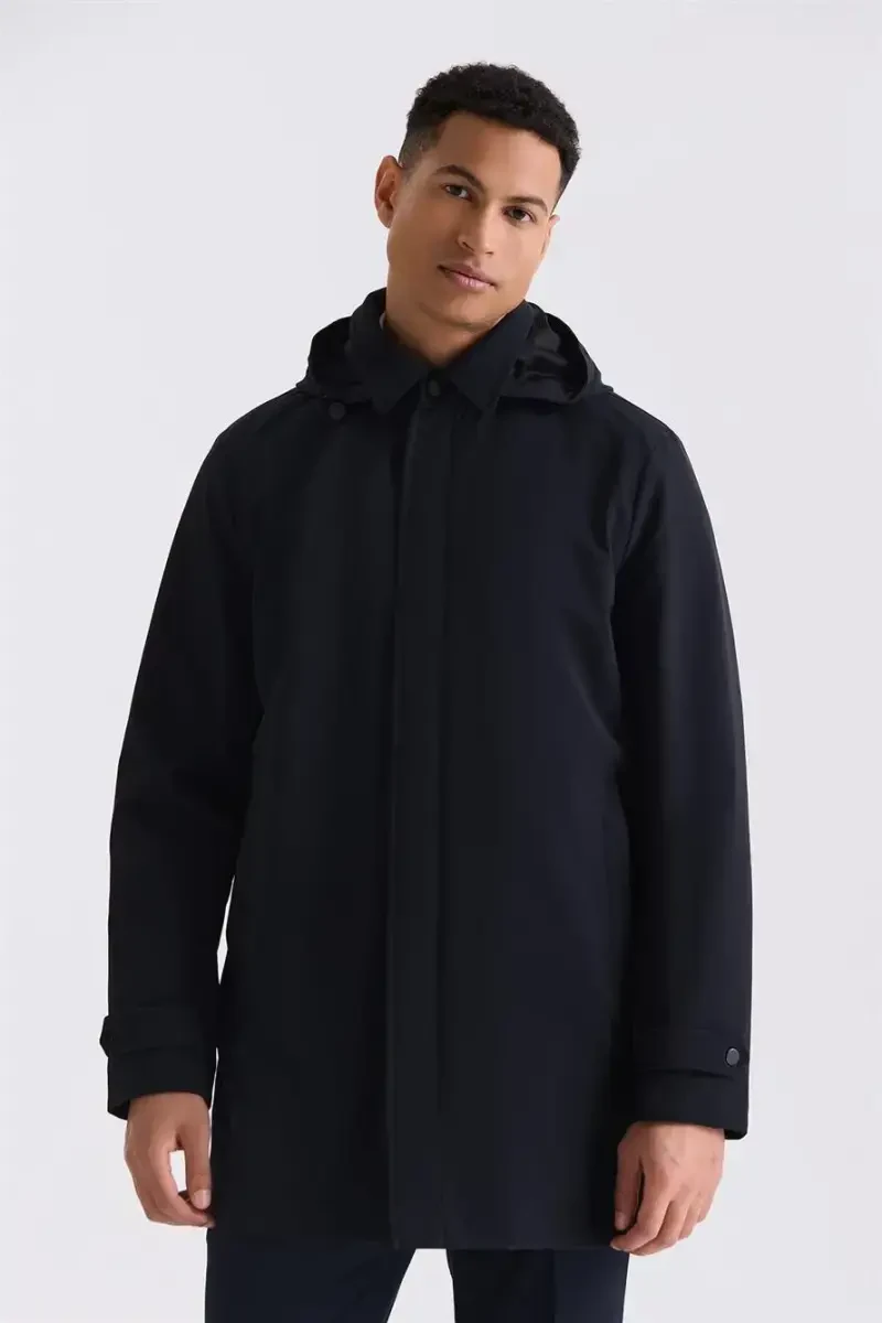 **Чёрная куртка Comfort Fit с капюшоном и скрытой застёжкой-молнией, классическая модель**Изготовленная из 85% полиамида и 15% спандекса, эта чёрная куртка дарит вам превосходный комфорт благодаря своей мягкой и эластичной текстуре. Куртка классического дизайна оснащена скрытой застёжкой-молнией, капюшоном и свободным кроем, благодаря чему вы будете чувствовать себя стильно и комфортно в любой обстановке.**Характеристики продукта:*** 85% полиамид (Polyamide)* 15% спандекс (Spandex)* Скрытая застёжка-молния* С капюшоном* Comfort fit* Параметры модели: * Рост: 187 см * Вес: 78 кг * Плечи: 120 см * Грудь: 100 см* Размер модели: 50