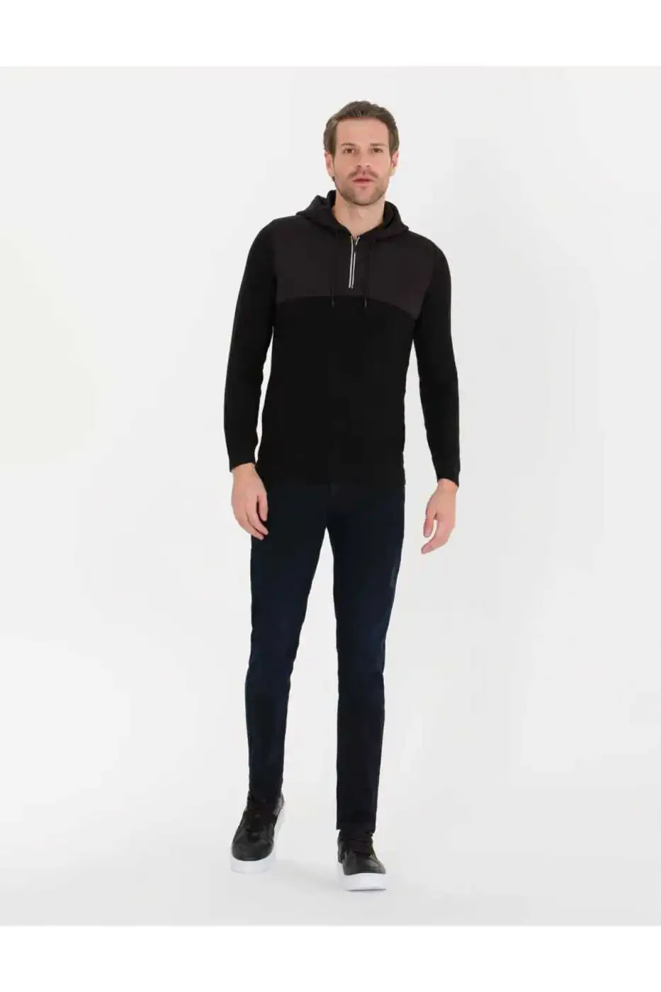 Сочетающий в себе стиль и комфорт, этот черный мужской трикотажный свитер с капюшоном Slim Fit станет незаменимой частью вашего гардероба. Свитер, обеспечивающий непревзойденный комфорт благодаря мягкой и высококачественной трикотажной ткани, идеально подходит для вашего тела благодаря своему приталенному крою. Капюшон согреет вас в холодную погоду, а стильный дизайн позволит вам выделяться в любой обстановке.