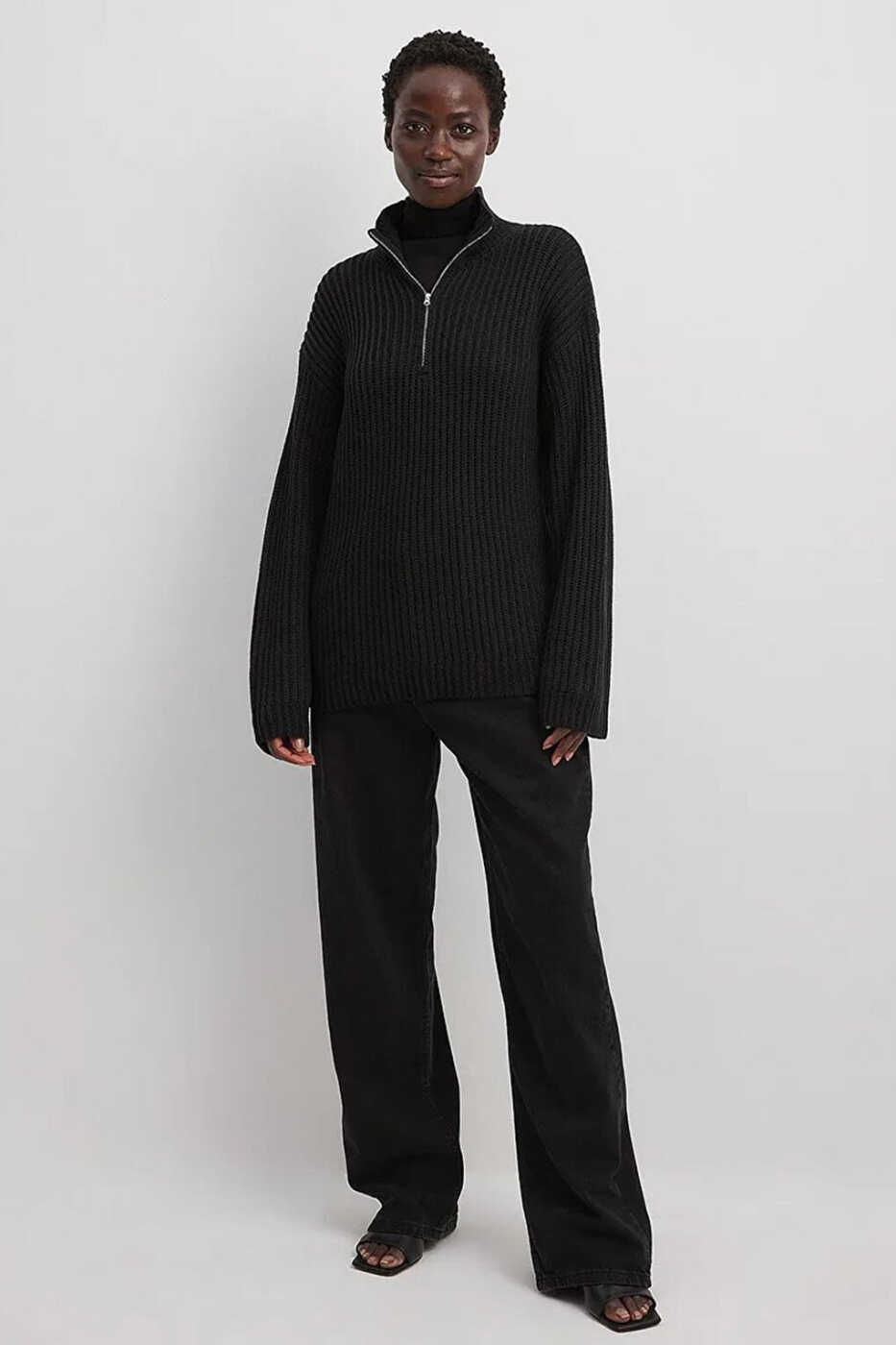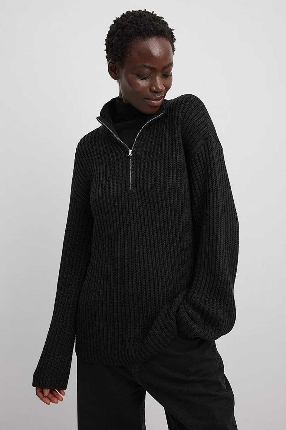 Черный свитер, Свитер с воротником-молнией, Базовый свитер, Повседневный свитер, Женский свитер, MG1960, Модели свитеров