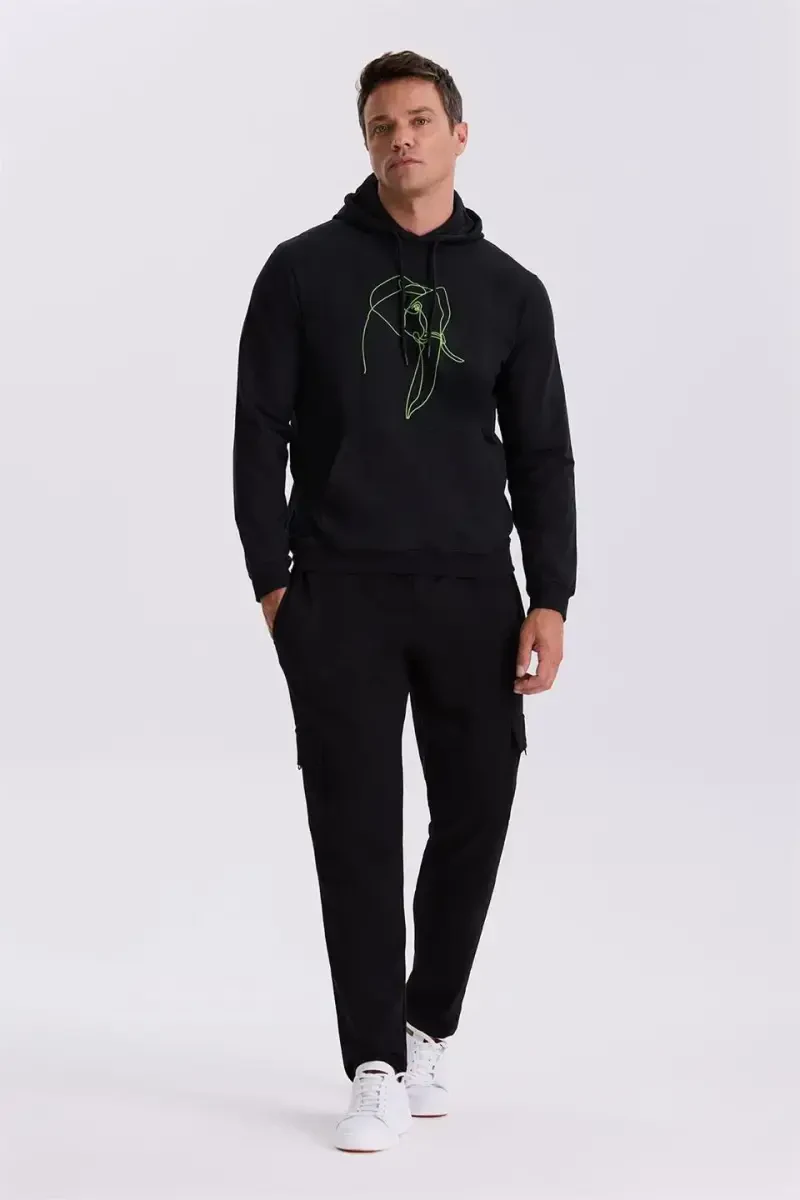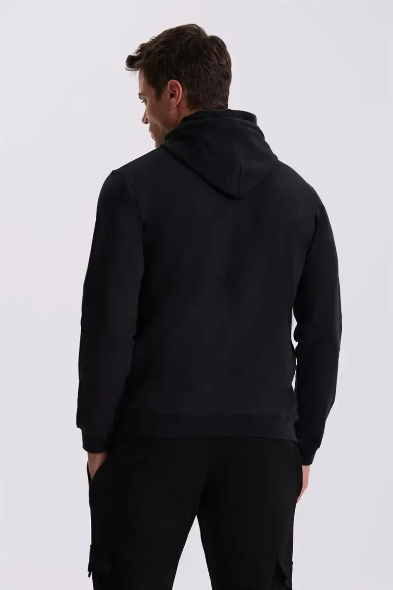 **Черный мужской свитшот с капюшоном Slim Fit с принтом из 100% хлопка**