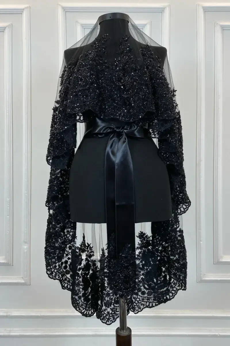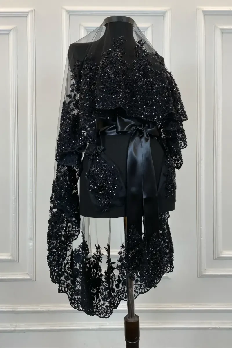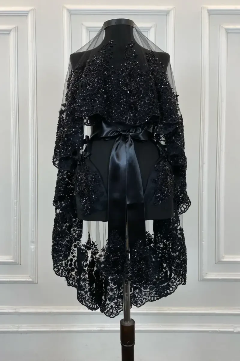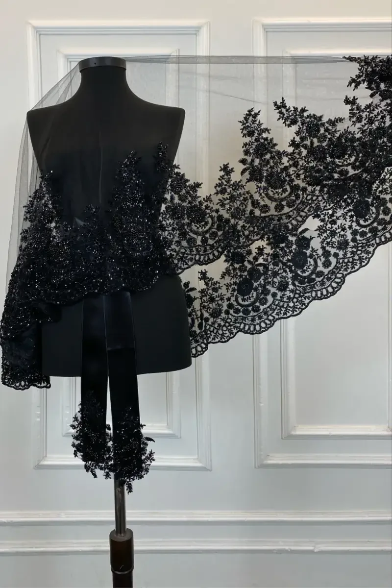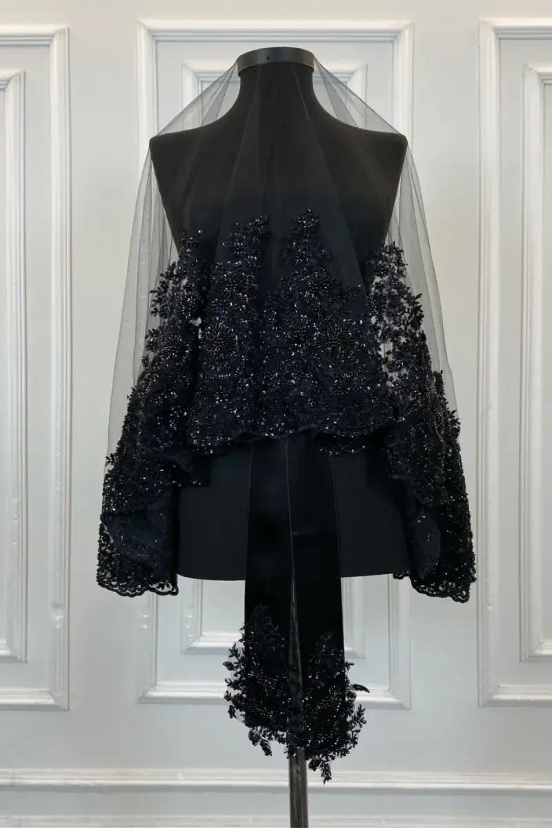 Черный Vip Свадебный Набор Фаты | Фата для Хны 6 Предметов Полный Набор - Черный | Аксессуары для Девичника и Невесты