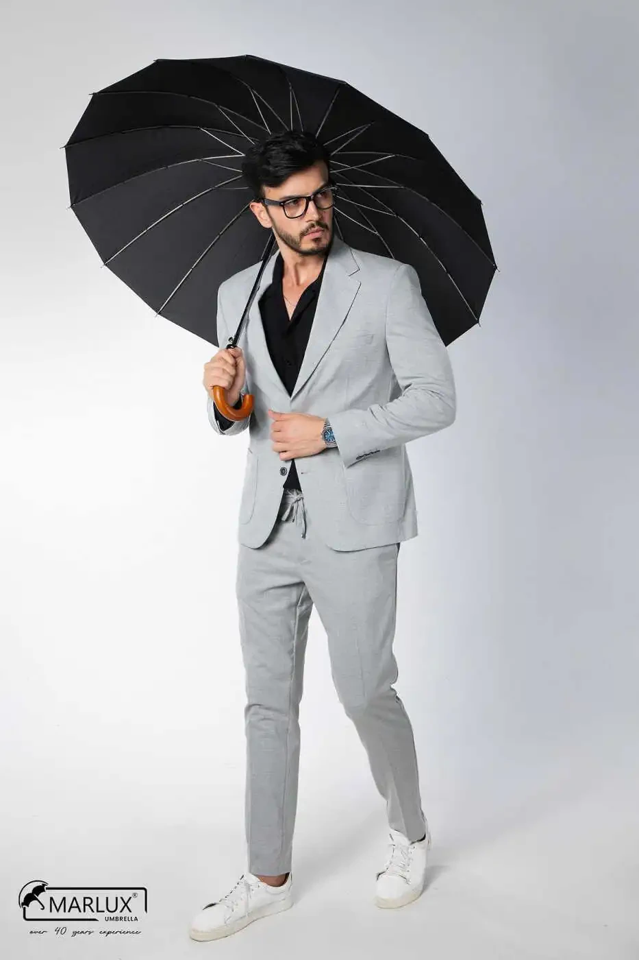 Черная деревянная ручка добавляет элегантности вашему стилю, а 16 стальных спиц гарантируют его прочность и ветроустойчивость. Его водонепроницаемая ткань защитит вас от дождя.