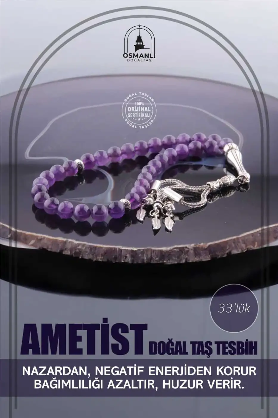 Amethyst is known for its calming, peaceful, and negative energy-clearing effects. The T170 model is a prayer beads that stands out with both its elegance and spiritual meaning. It will accompany you in your daily life or in your meditations, transporting you to peace and tranquility.