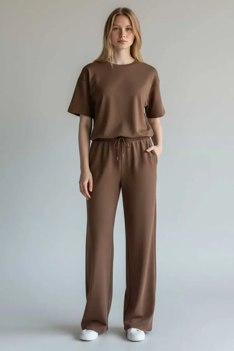 Bu ürün We-Rayss tarafından gönderilecektir.Kampanya fiyatından satılmak üzere 10 adetten fazla stok sunulmuştur.Bir ürün, birden fazla satıcı tarafından satılabilir. Birden fazla satıcı tarafından satışa sunulan ürünlerin satıcıları ürün için belirledikleri fiyata, satıcı puanlarına, teslimat statülerine, ürünlerdeki promosyonlara, kargonun bedava olup olmamasına ve ürünlerin hızlı teslimat ile teslim edilip edilememesine, ürünlerin stok ve kategorileri bilgilerine göre sıralanmaktadır.Bu üründen en fazla 10 adet sipariş verilebilir. 10 adedin üzerindeki siparişleri Trendyol iptal etme hakkını saklı tutar. Belirlenen bu limit kurumsal siparişlerde geçerli olmayıp, kurumsal siparişler için farklı limitler belirlenebilmektedir.15 gün içinde ücretsiz iade. Detaylı bilgi için [page="return_conditions"]tıklayın .- Yüksek kaliteli modal kumaştan üretilmiş, yumuşak dokusuyla gün boyu konfor sunar.- Casual tarzınıza uyum sağlayacak, sweatshirt ve eşofman altından oluşan 2'li takım.- Standart kısa kollu tasarımı ile mevsim geçişlerinde ideal kullanım sağlar.- Geniş paça eşofman altı, rahat hareket etme özgürlüğü sunar.- Lastikli bel tasarımı sayesinde gün boyu rahat bir oturuş sağlar.- Baskısız ve düz tasarımıyla sade ve şık bir görünüm elde edilir.- Orta kalınlıkta kumaşı, yılın her mevsiminde tercih edilebilir.- Basic silueti ile zamansız bir tarz yaratır.- Astarsız yapısı sayesinde hafif ve nefes alabilen bir kullanım sunar.- Cool & Comfort persona'sına uygun, rahat ve şık bir görünüm sağlar.- Çift cepli tasarımı, küçük eşyalarınız için pratik saklama alanları sunar.- Lastikli ürün detayları, vücuda tam oturmasını sağlar ve konforu artırır.- Tüylenmez özelliği ile uzun süreli kullanımda bile formunu korur.- Yumoş dokuma tipi, cildinize nazik bir dokunuş sunar.- Kemersiz tasarımı ile modern ve sade bir stil yaratır.- Bisiklet yaka kesimi, rahat ve şık bir boyun hattı oluşturur.- Düz deseniyle kolayca kombinlenebilir ve her ortama uyum sağlar.- Regular kalıbı sayesinde vücuda tam otururken rahat hareket etme imkanı verir.- Yetişkin kadınlar için tasarlanmış, normal boy uzunluğuyla her vücut tipine uyum sağlar.- Türkiye'de üretilmiş olup, yerel üretimle desteklenmiştir.- Dokuma kumaş tipi, dayanıklılığı ve konforu bir arada sunar.