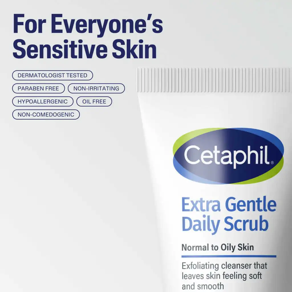 - Cetaphil Extra Gentle Daily Scrub протестирован дерматологами и клинически доказано, что он не вызывает раздражения, гипоаллергенен и не комедогенен.