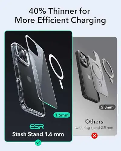 **Чехол ESR для iPhone 16 Pro, совместимый с MagSafe, защитный чехол военного класса, встроенный складной держатель, задняя крышка, устойчивая к царапинам, классическая серия, прозрачный****Описание:****Совместимость:** только для iPhone 16 Pro; не включает защитные стекла или встроенные защитные стекла для объектива камеры**Усиленный магнитный замок:** мощные встроенные магниты с удерживающей силой 1500 г обеспечивают более быструю и легкую беспроводную зарядку и надежное крепление к любому аксессуару MagSafe**Регулируемая скрытая подставка:** расположена вокруг рамки камеры, чтобы оставаться скрытой в сложенном виде, при этом кольцо MagSafe остается на 100% свободным; наслаждайтесь свободно регулируемым и стабильным видом для просмотра шоу в любое время и в любом месте**Прочный:** прочная и долговечная конструкция из цинкового сплава гарантирует, что подставка будет выглядеть как новая, а шарнир прошел лабораторные испытания, чтобы сохранить свою прочность после более чем 3000 использований**Защита военного класса:** амортизирующие углы Air Guard в сочетании с поднятыми краями экрана и защитой камеры обеспечивают сертифицированную защиту от падений, ударов и царапин**Полная поддержка клиентов:** подробные видеоролики по настройке и часто задаваемые вопросы, комплексный 12-месячный план защиты, пожизненная поддержка и персональная помощь