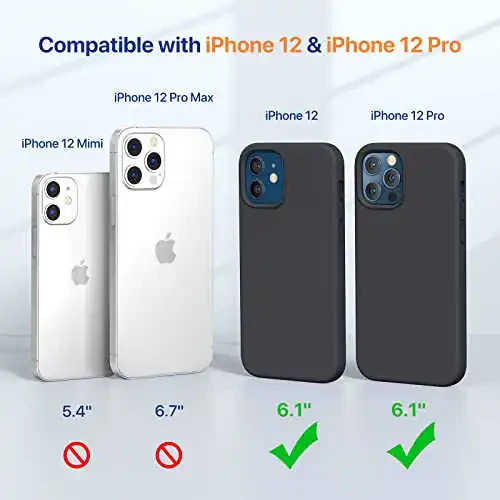Miracase - это чехол для телефона для iPhone 12 и iPhone 12 Pro, изготовленный из жидкого силиконового гелевого каучука, обеспечивающий полную защиту корпуса от ударов и падений, подходит для iPhone 12/12 Pro 6,1 дюйма (черный).