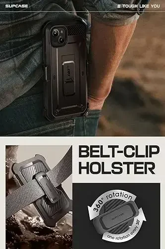 **[Поворотный чехол]:** Съемный вращающийся чехол с зажимом для ремня для удобной переноски без помощи рук и без карманов. В чехле также есть встроенная подставка.