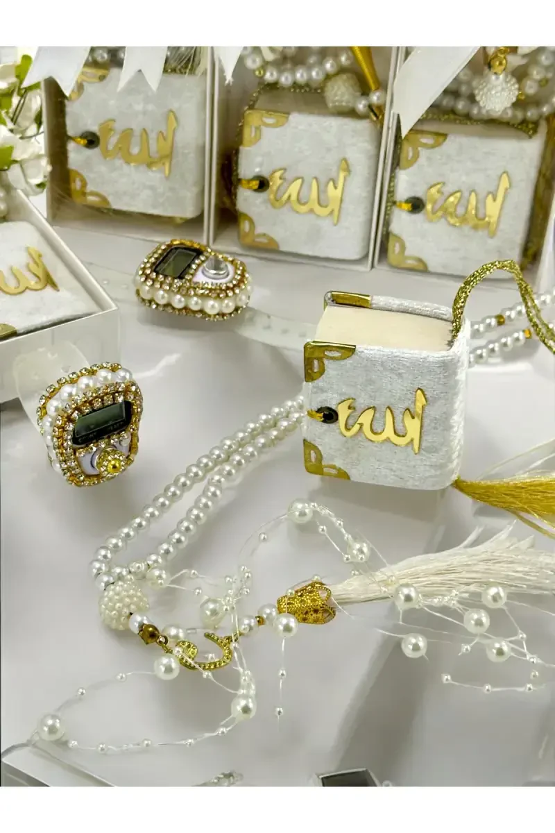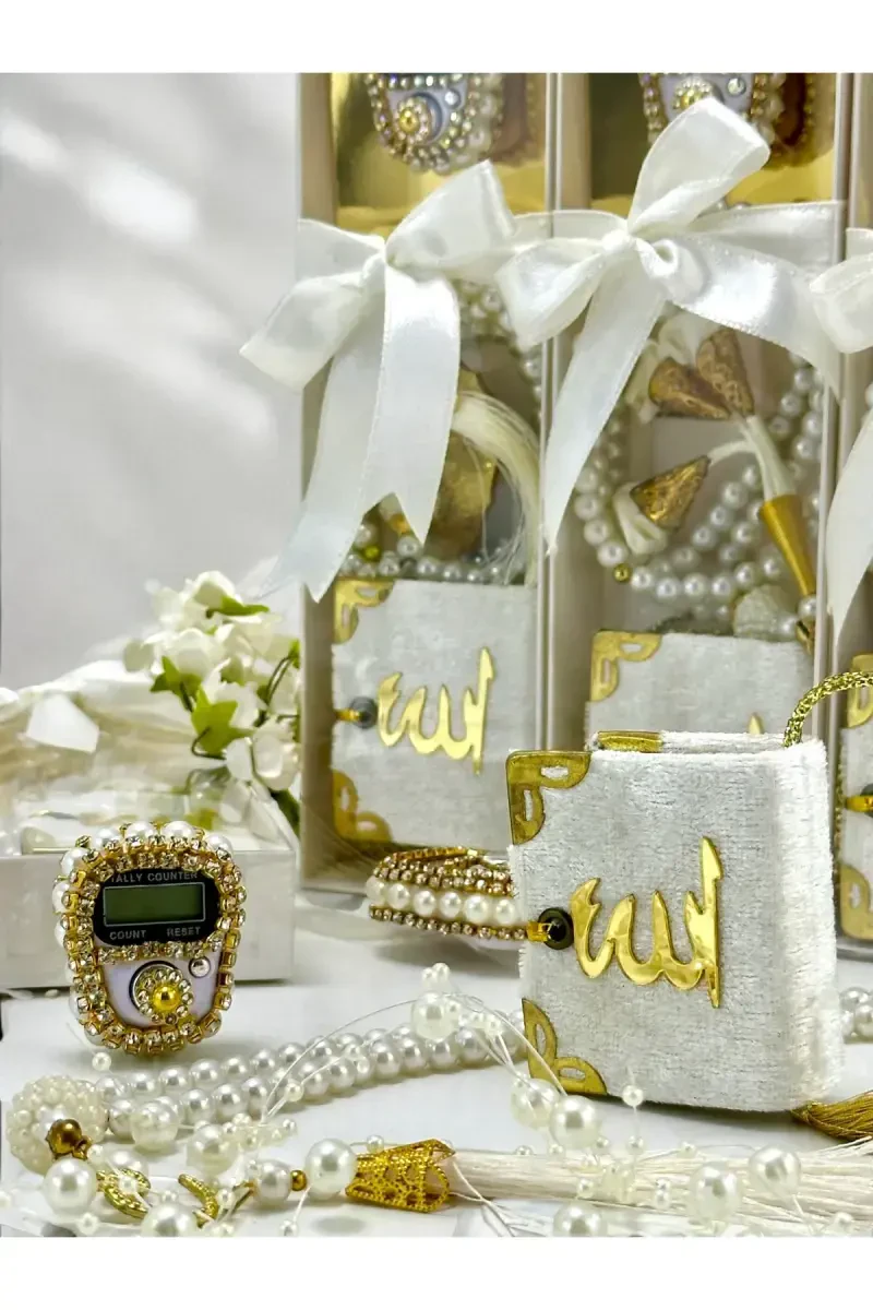 Çeyiz sandıklarının en nadide köşesinde yer alacak, bebek mevlidlerinde dualarla süslenecek, Hac ve Umre ziyaretlerinden dönenlerin sevdiklerine getirebileceği en anlamlı hediye; beyazın zarafetiyle bezenmiş (Zikirmatik, Tesbih, Mini Kuran Seti) kombinasyonumuz! Bu özel set, manevi değerleri ön planda tutan, sevdiklerine unutulmaz bir armağan vermek isteyenler için tasarlandı. Her bir parçası özenle seçilmiş, bir araya getirilmiş ve beyazın asaletiyle taçlandırılmıştır. Zikirmatik, günlük ibadetlerinizi kolaylaştırırken, tesbih kalbinizin huzurla dolmasına yardımcı olur. Mini Kuran Seti ise, kutsal kelamın her an yanınızda olmasına imkan tanır. Bu set sadece bir hediye değil, aynı zamanda bir sevgi ifadesi, bir dua ve manevi bir yolculuktur. Sevdiklerinize bu anlamlı hediye ile hem kalplerine dokunacak hem de onların manevi hayatlarına katkıda bulunacaksınız. Beyazın saflığı ve ürünlerin manevi değeri bir araya gelerek, sevdiklerinize unutulmaz bir armağan sunmanızı sağlar. Bu özel set, özel günlerinizi daha da anlamlı kılacak ve sevdiklerinizle aranızdaki bağı güçlendirecektir. Maneviyatı ön planda tutan ve sevdiklerine kalıcı bir hediye vermek isteyen herkes için ideal bir seçimdir. Hediye ettiğiniz kişiye her kullanımında sizi hatırlatacak, dualarında yer alacak ve manevi huzur bulmasına vesile olacaktır. Bu set, sadece bir eşya değil, aynı zamanda bir anlam, bir değer ve bir hatıradır.