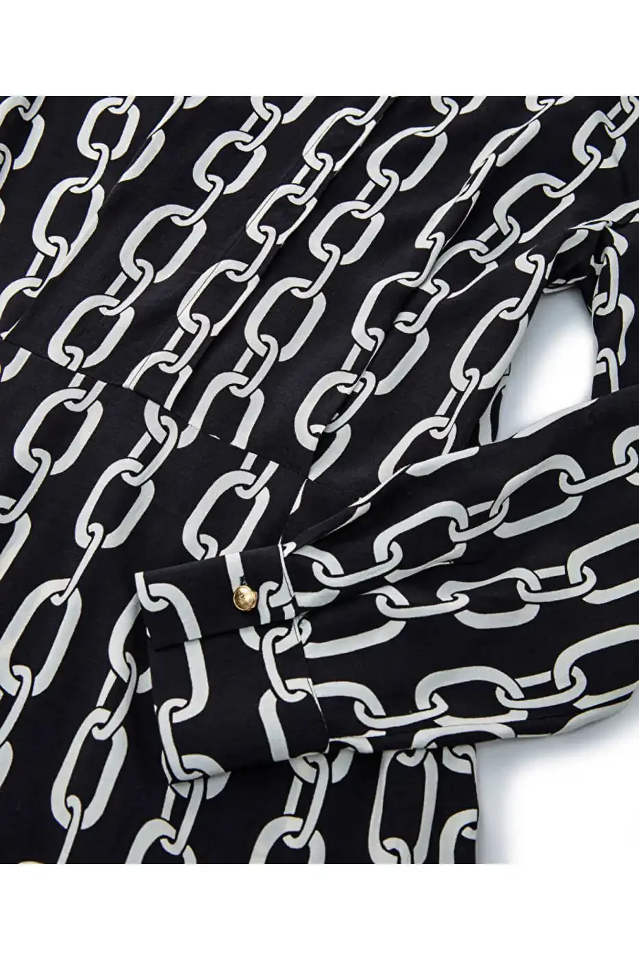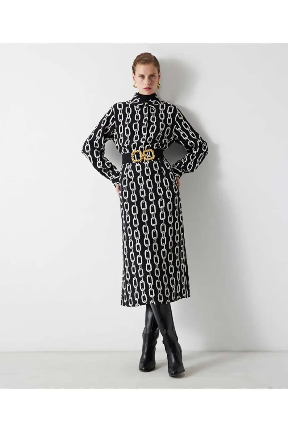 Designed for those seeking timeless elegance and a sophisticated look, the Chain Pattern Dress is a must-have for your wardrobe. This dress, where the elegant chain pattern is displayed in a dazzling manner, will make you feel special and confident in every environment.