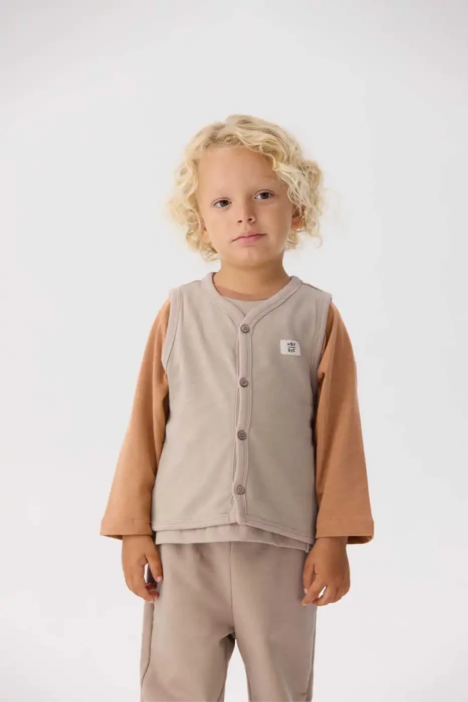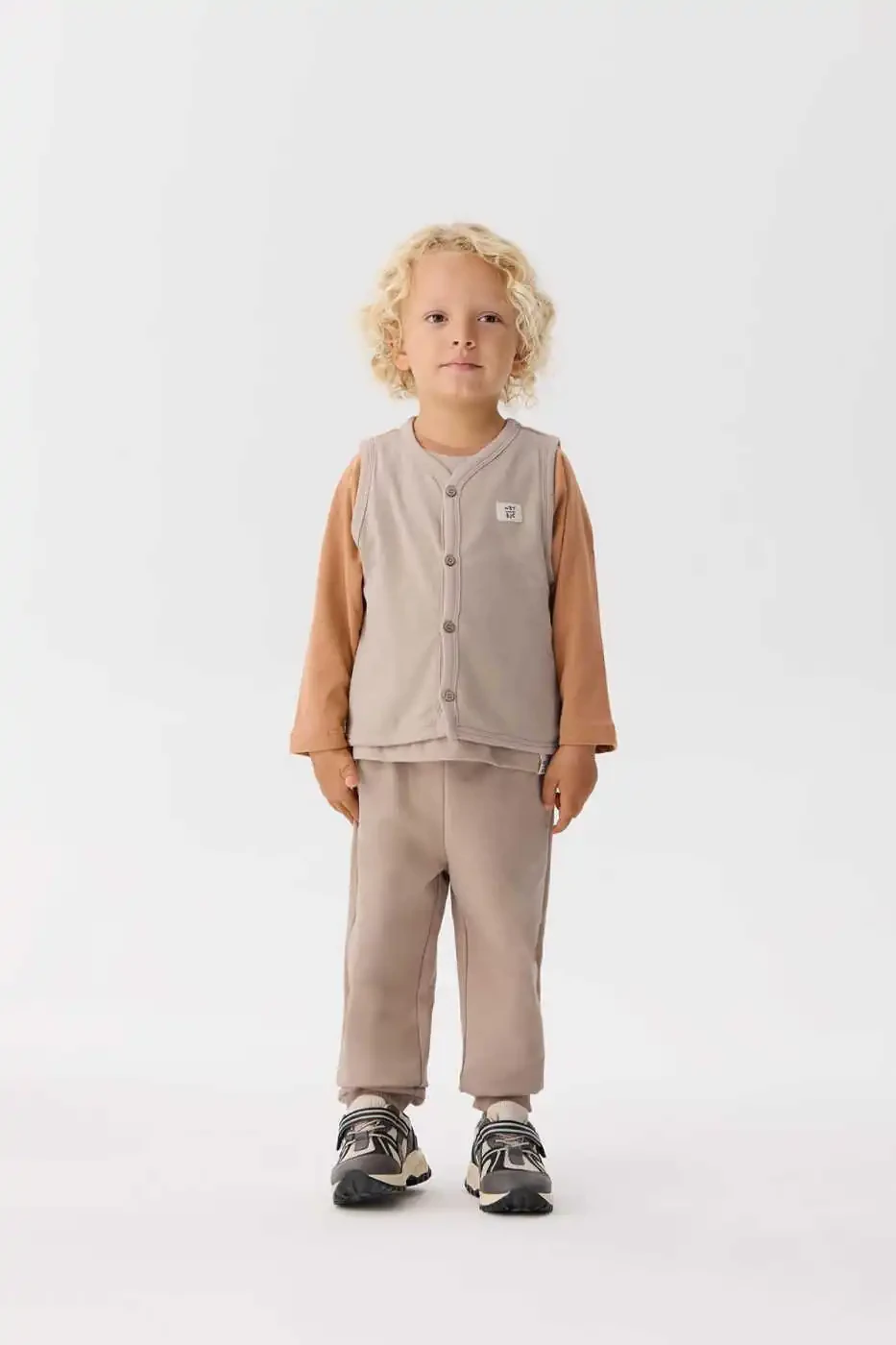 Kichkina shahzodangizning uslubini to'ldiradigan, yumshoq va issiq yelek qidiryapsizmi? To'g'ri joydasiz! BG Store Erkak Chaqaloq Bej Jileti 100% paxta matosi dan tayyorlangan bo'lib, chaqalog'ingizning terisiga muloyim va allergiya qilmaydi. Bej rangi har qanday kiyimga mos keladi va yelek old tomonidagi tugmalar yordamida osongina kiydirilib olinadi. Yelekda joylashgan yoqimli ayiqcha figurasi chaqalog'ingizning uslubiga yoqimli teginish qo'shadi, amaliy cho'ntaklari esa mayda narsalarni tashish imkonini beradi.
