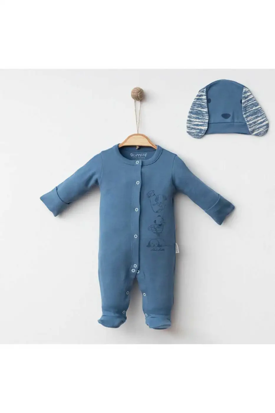 Bebek tulum, paxta tulum, it mavzusidagi, chaqaloq shapka, yangi tug'ilgan, tugmachali tulum, chaqaloq kiyimi, organik paxta, sovg'a, chaqaloq to'qimachilik