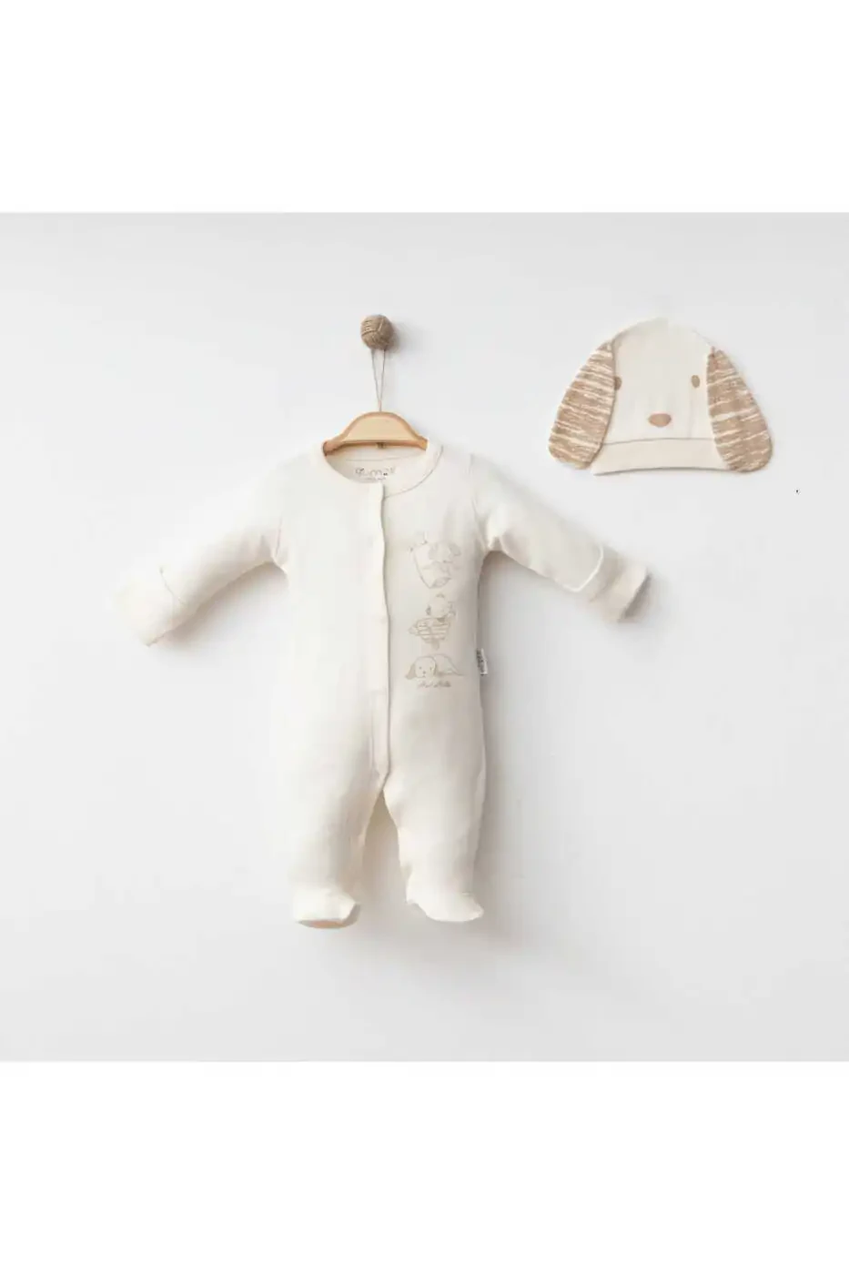 Bebek Tulum Takımı %100 Pamuk Köpek Temalı Şapkalı
