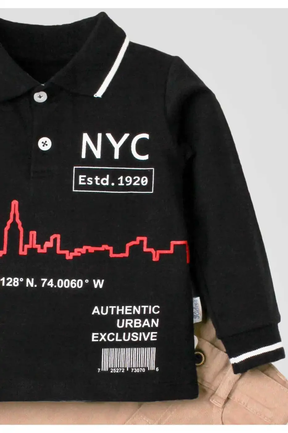 Polo ko'ylagi zamonaviy ko'rinish uchun tugmachalar bilan ta'minlangan, shuningdek, kiyish oson. Shimlar qulay o'tirish uchun elastik bel qismi bilan jihozlangan. Ikki qismli to'plam bolangizning kiyimini to'ldirish uchun zamonaviy kombinatsiyani taklif etadi.
