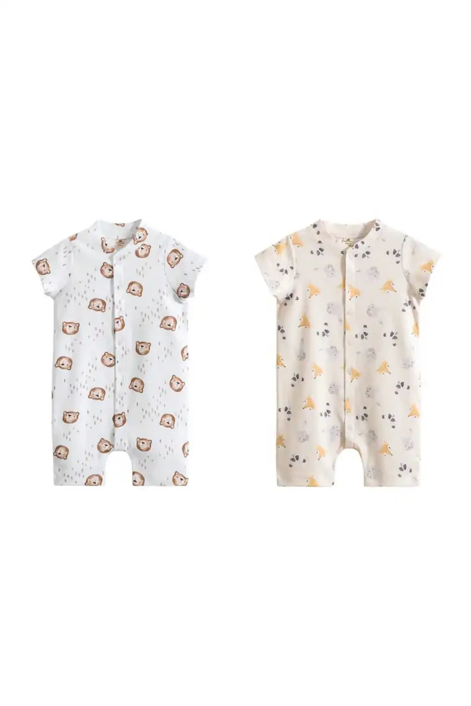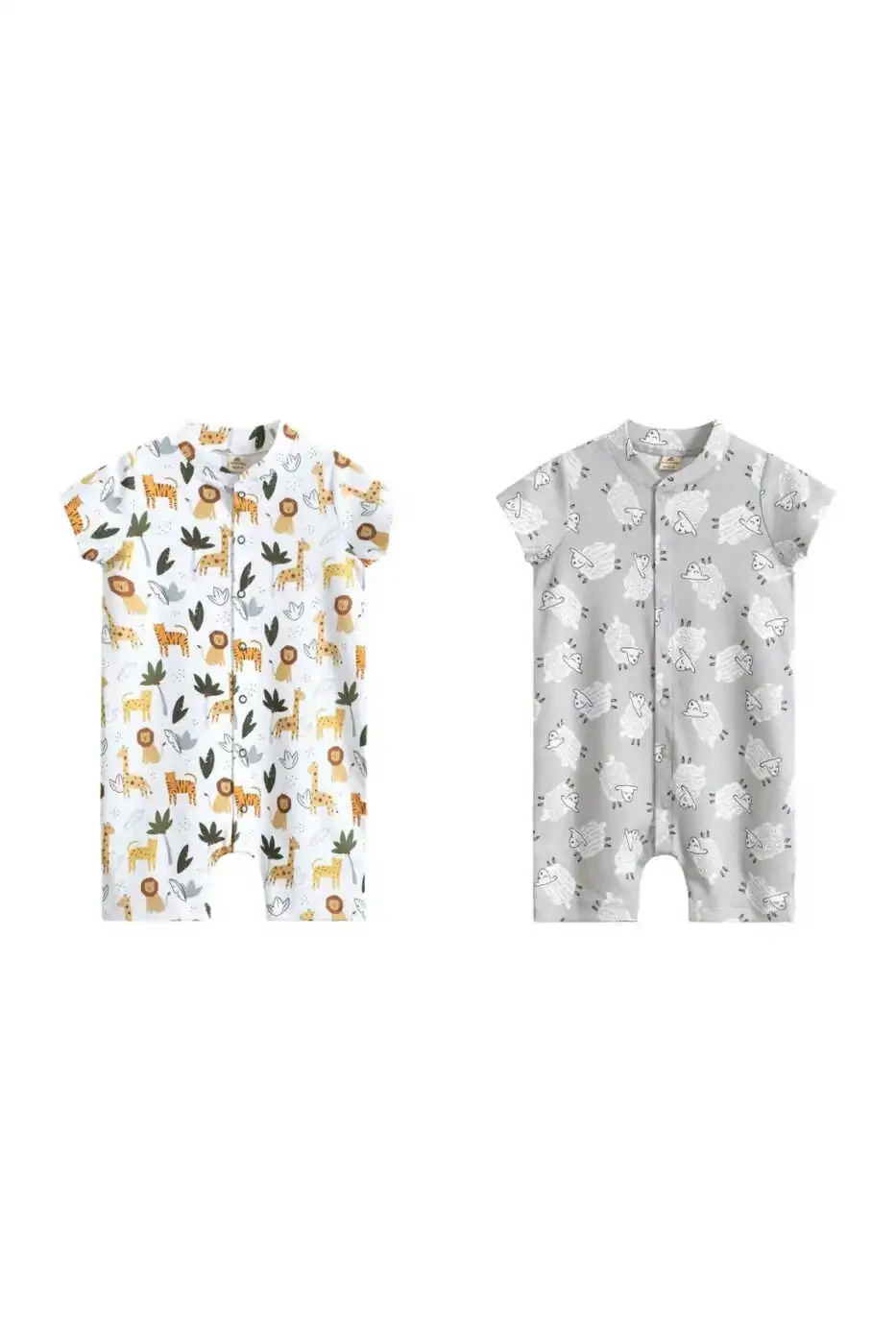 chaqaloq romper, organik paxta, qisqa yengli romper, shimli romper, chaqaloq bosib chiqarilgan, 2 ta romper, chaqaloq kiyimlari