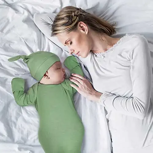 Qiz va o'g'il bolalar uchun super yumshoq chaqaloq uzun yengli uyqu kiyimi. Chaqaloq uyga qaytish kasalxonasi kiyimi va shlyapa to'plami, och ko'k