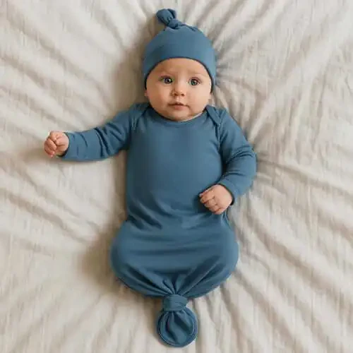 Ushbu to'plam chaqalog'ingizning uyga qaytish safariga ajoyib sovg'a tanlovidir. Libos va shlyapa to'plami chaqalog'ingizni juda yoqimli qiladi va har qanday holatga mos keladigan uslubni taklif etadi. Och ko'k rang chaqalog'ingizning jinsiga qarab tanlanishi mumkin yoki genderga befarq ko'rinish uchun boshqa ranglar bilan birlashtirilishi mumkin.