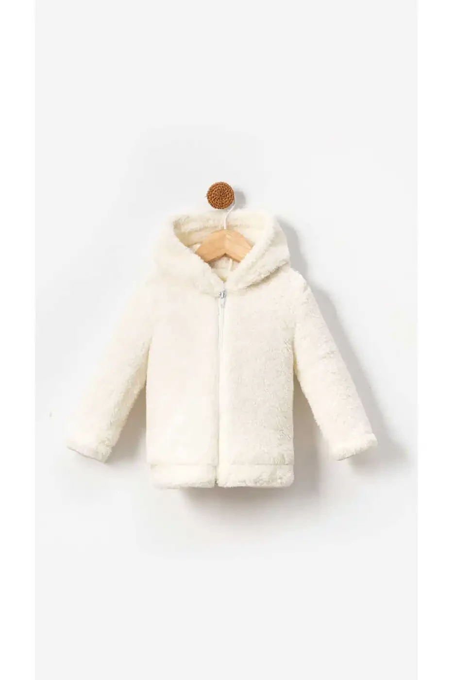 Fermuarli Kaputli Chaqaloq Plush Welsoft Qishki Ko'ylagi - Oq