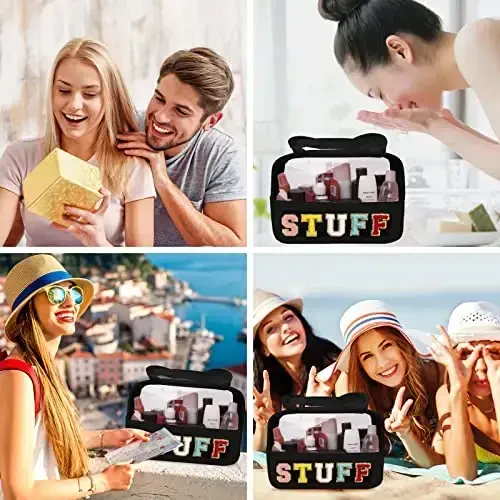 Shaxsiy Chenille Patch bilan bezatilgan Makiyaj/Sayohat sumkasi | Suv o'tkazmaydigan va Shaffof Organayzer