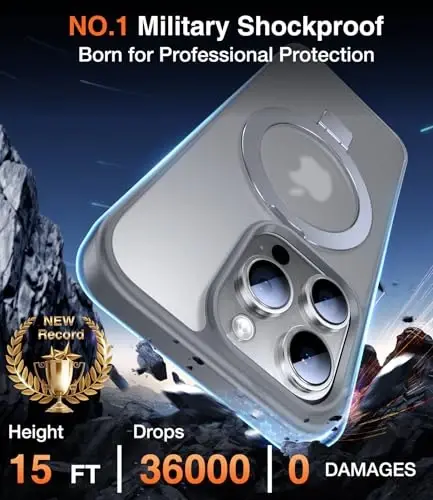 The Chicfun 3-in-1 iPhone 13 Pro Max case is the perfect way to protect your phone and enhance its usability. Combining magnetic, stand, and ring holder features, this case offers you a unique experience. Compatible with MagSafe, this case facilitates wireless charging thanks to its strong magnetic connection and securely holds your phone. The integrated aluminum stand can secure your phone in both horizontal and vertical positions at angles of 40-120°, allowing for hands-free video viewing, video calls, and even stable selfies. The built-in ring holder helps you hold your phone more securely and prevents it from falling. With military-grade shock-absorbing properties, this silicone case protects your phone from drops from heights of up to 15 feet. The air cushions in the corners and durable silicone material ensure your phone is best protected against impacts. Additionally, raised edges for the camera and screen provide extra protection against scratches. The Chicfun 3-in-1 iPhone 13 Pro Max case is not only protective but also a stylish and useful accessory. Its matte texture gives your phone a premium look, while its precise buttons and ergonomic design ensure ease of use. This case protects your iPhone 13 Pro Max from damage that may occur in daily use while offering you a unique user experience. With its strong magnetic feature, sturdy stand, and convenient ring holder, this case will make your life easier and allow you to enjoy using your phone more.