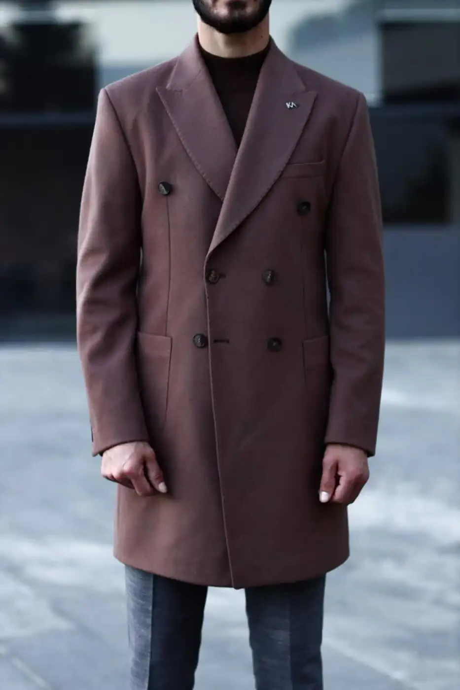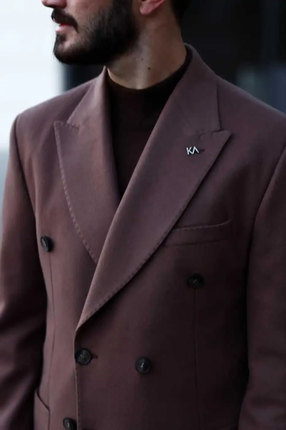 Erkaklar shkafining ajralmas qismi bo'lgan chiroyli ikki tomonlama yoqali palto ham uslubni, ham issiqlikni birlashtiradi. Jun va poliester aralashmasidan tayyorlangan bu palto yumshoq to'qimasi va chidamli tuzilishi bilan siz ko'p yillar davomida foydalanishingiz mumkin bo'lgan buyumdir.