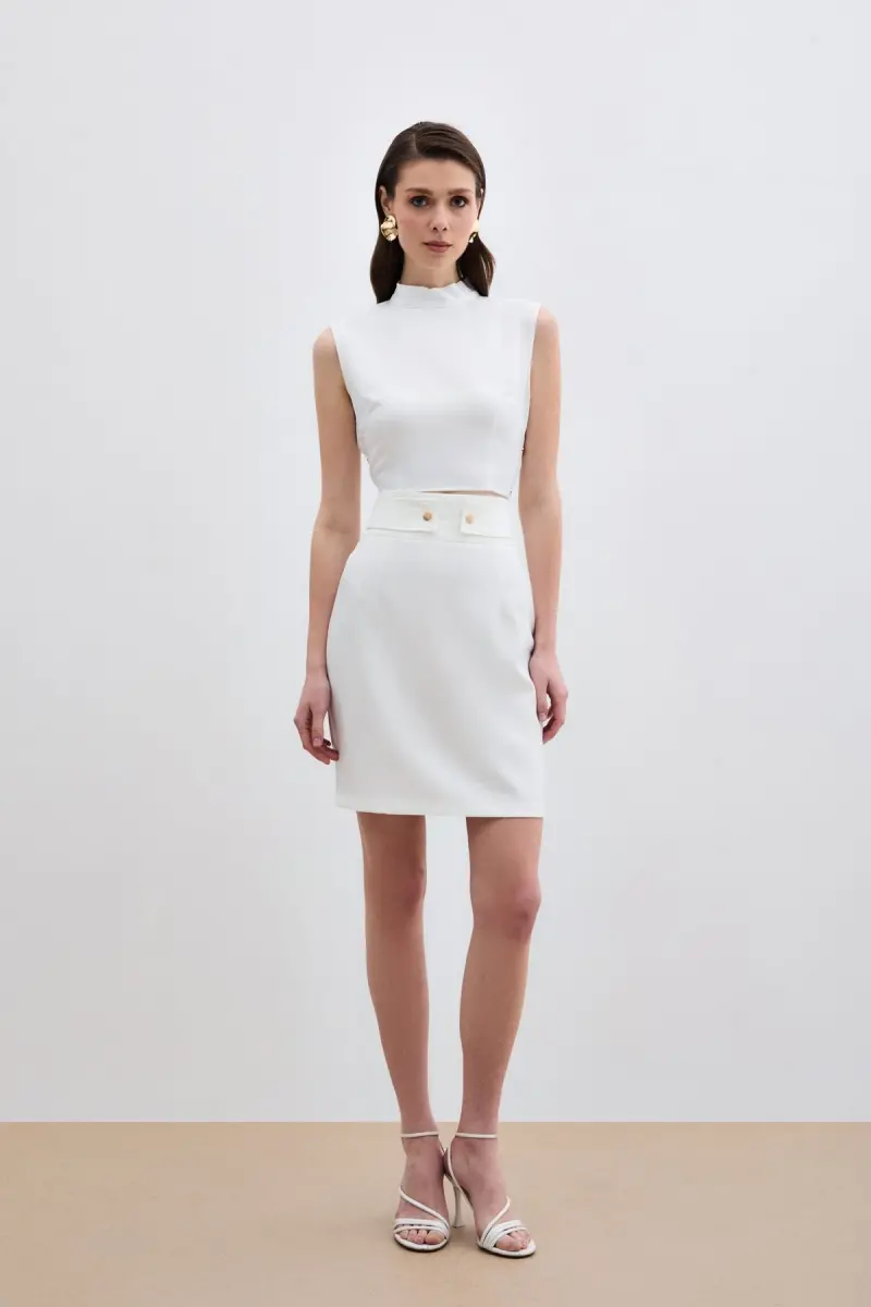 Chit aksessuarlar bilan bezatilgan mini yubka - Ekru rangi bilan garderobingizning ajralmas qismiga aylanishga nomzod! Sateen sifati bilan taqdim etilgan ushbu zamonaviy mini yubka, baland bel dizayni va zamonaviy detallari bilan ajralib turadi. Orqa fermuar tufayli uni osongina kiyish mumkin, bel qismidagi tugmalar esa yubkaga o'zgacha havo beradi. Ham kundalik foydalanish, ham maxsus kunlar uchun ideal tanlov bo'lgan ushbu yubka, uslubingizni aks ettirishga yordam beradi. Ekru rangining nafisligi har qanday kombinatsiya bilan uyg'unlashib, sizga cheksiz imkoniyatlar taqdim etadi. Xohlasangiz, zamonaviy bluzka bilan kombinatsiya qilib, maxsus tadbirga boring, xohlasangiz, oddiy futbolka bilan kundalik uslubni yarating, bu mini yubka har qanday holatda ham uslubingizni namoyish etadi. Modeldagi 36/S o'lchami, yubkaning tanaga mos keladigan kesimini va zamonaviy ko'rinishini eng yaxshi tarzda ko'rsatadi. Bo'yi 54 sm bo'lgan ushbu yubka, mini yubka sevuvchilar uchun ideal uzunlikda. Garderobingizda bo'lishi kerak bo'lgan ushbu trend buyum bilan har doim zamonaviy va o'ziga xos ko'rinasiz.