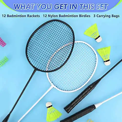 Chitidr 12 ta Badminton Raketlari To'plami bilan siz bog'ingizda, parkda yoki plyajda zavqli badminton o'yinlaridan bahramand bo'lishingiz mumkin.