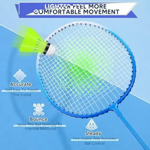 Chitidr 12'li Badminton Raketi Seti, badminton raketleri, naylon badminton topları ve açık hava bahçe oyunları yeni başlayanlar için taşıma çantası içerir.