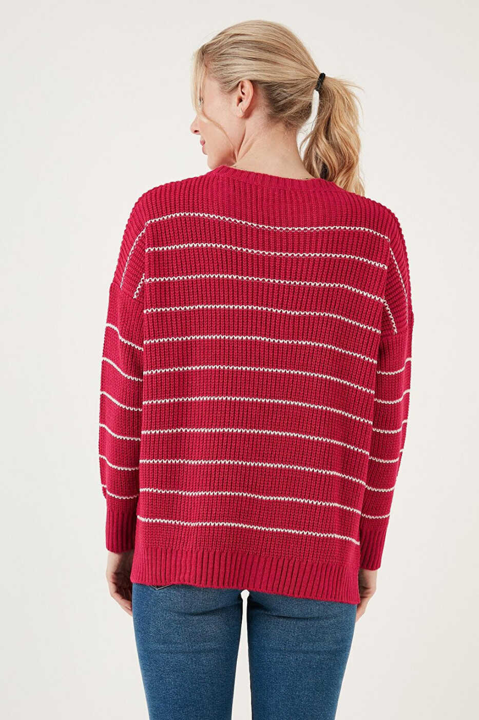 Chiziqli Uzun Orqa Kru Yaka Triko Ko'ylagi - Zamonaviy va Iliq Qishki Ko'ylagi