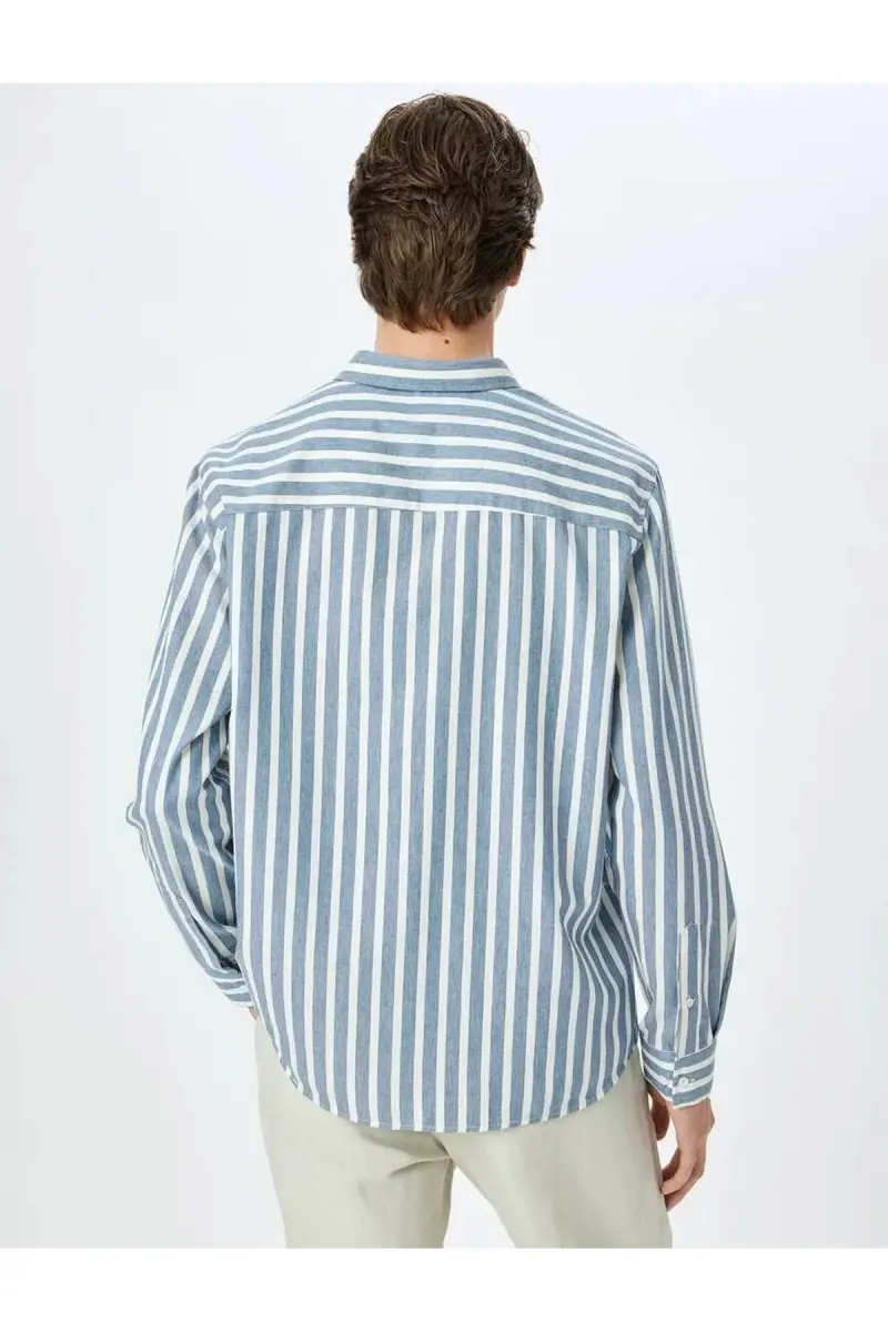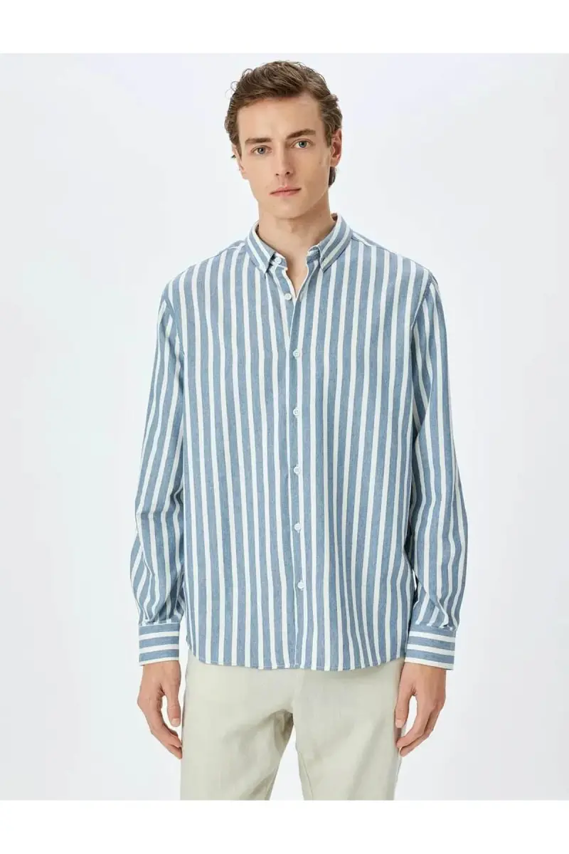 Chiziqli Slim Fit Ko'ylak | Erkaklar uzun yengli ko'ylak